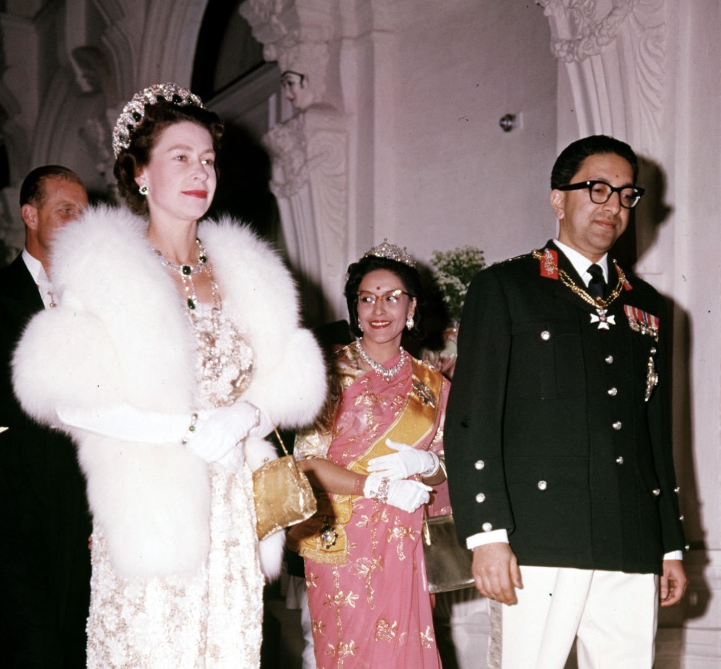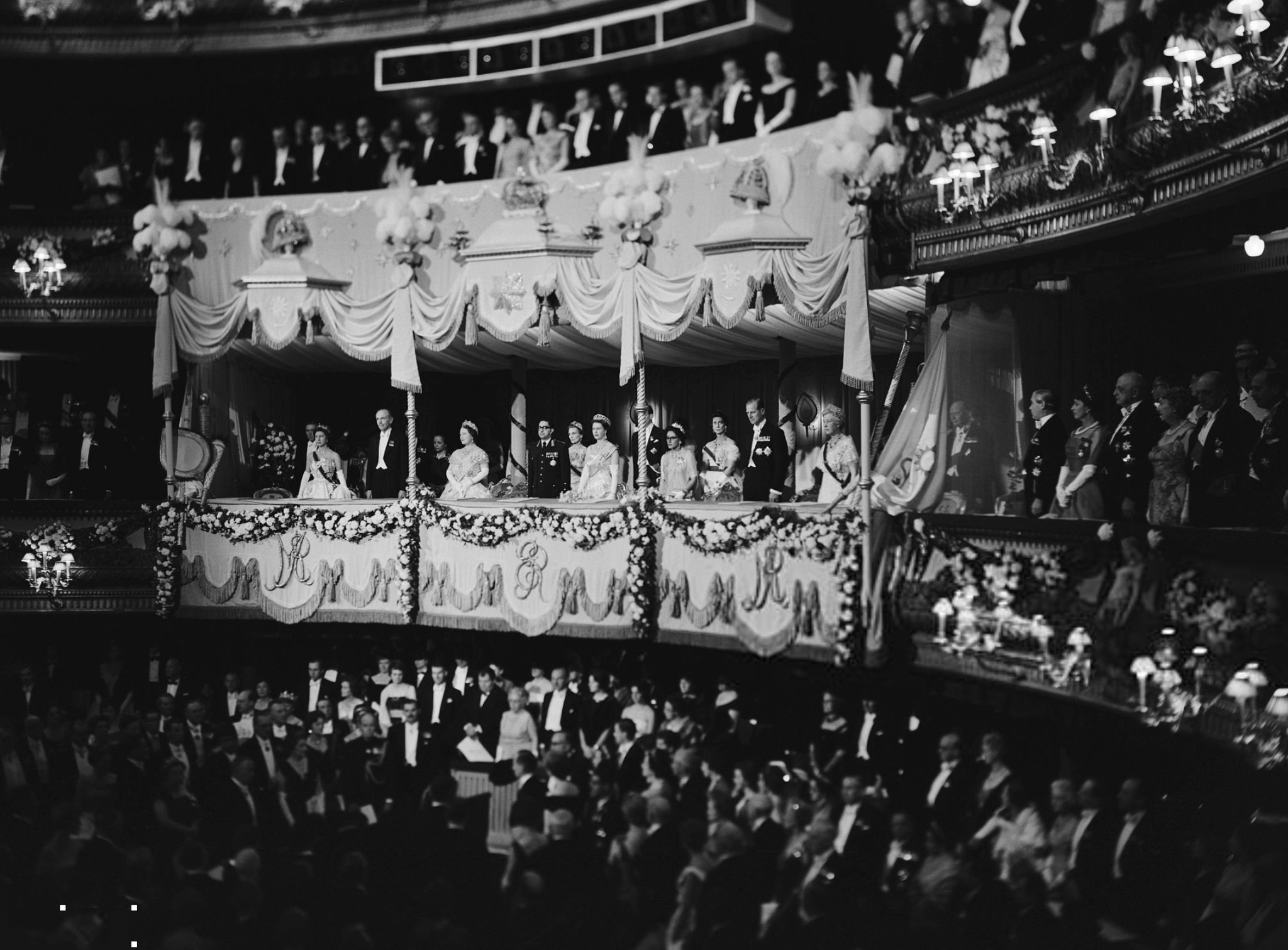 The following year, the Queen (wearing the Vladimir Tiara) and Royal Family joined King Mahendra and Queen Ratna (in the Nepalese Diamond Tiara) for a glittering Gala Performance at the Royal Opera House in Covent Garden.