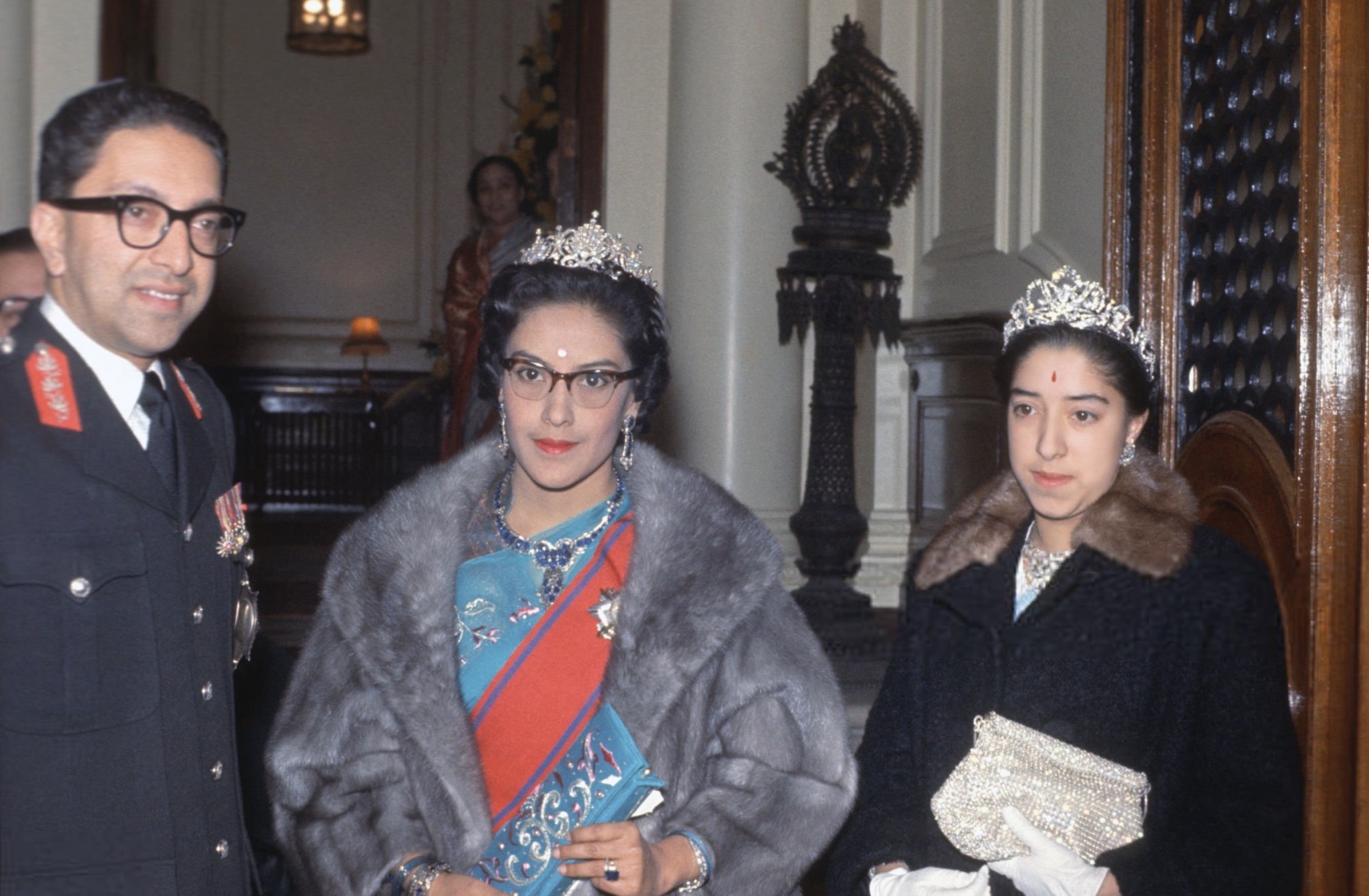 King Mahendra and Queen Ratna (in the Nepalese Diamond Tiara) with Princess Shanti (wearing her Diamond Tiara)