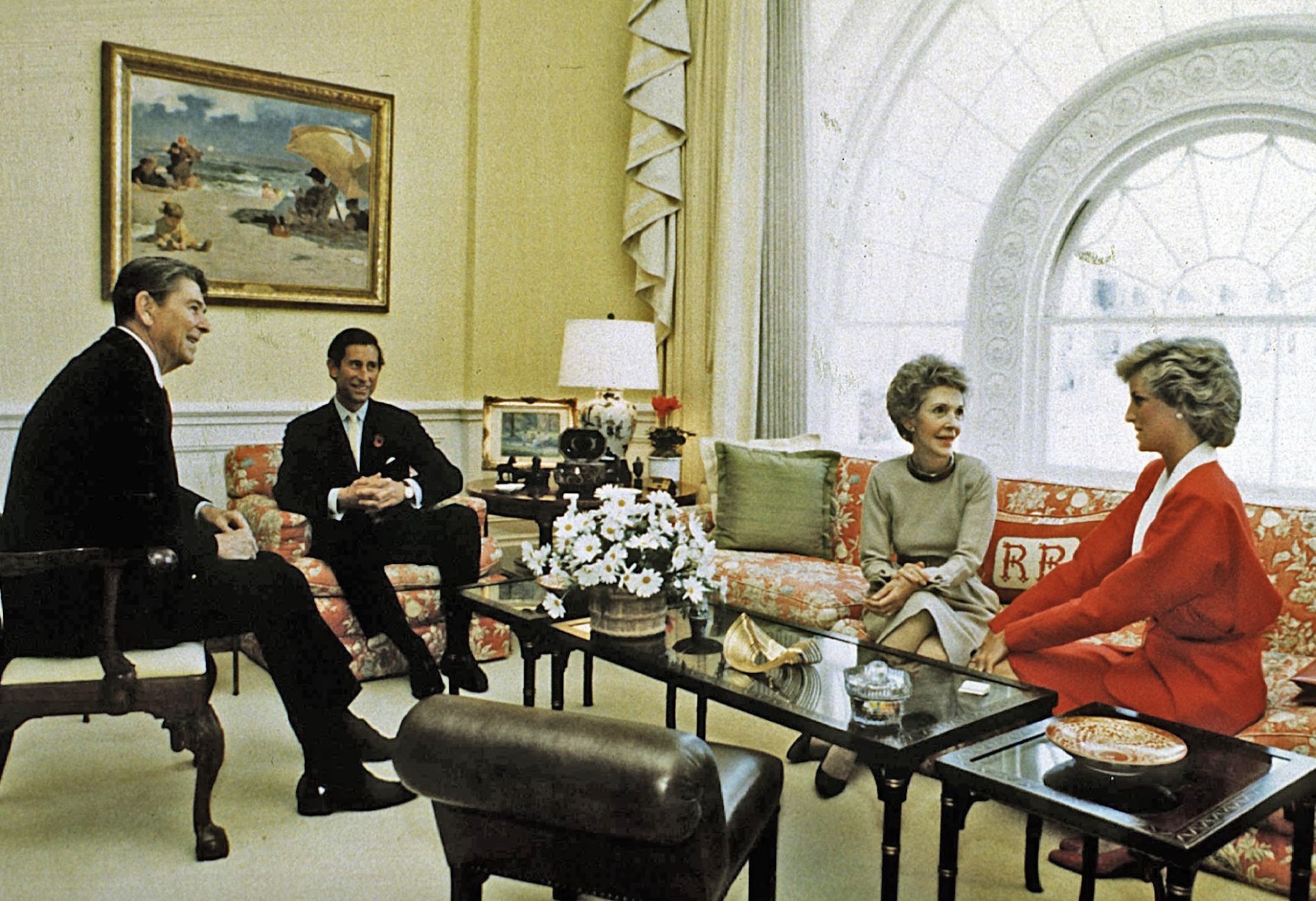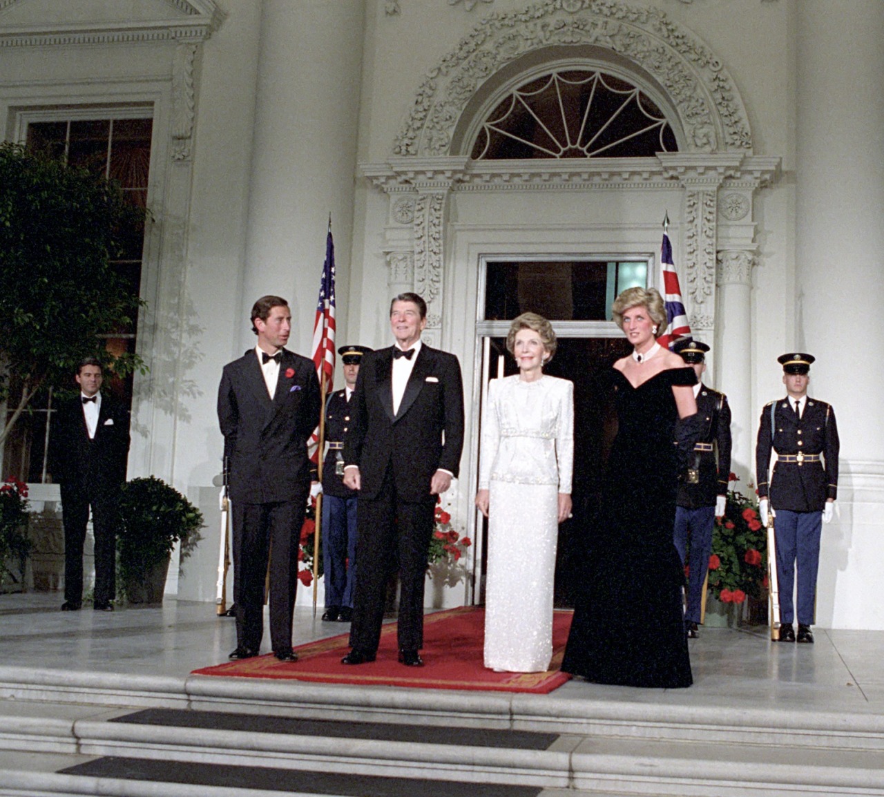 The Prince and Princess of Wales were welcomed by President Ronald Reagan and First Lady Mrs Nancy Reagan at the White House.