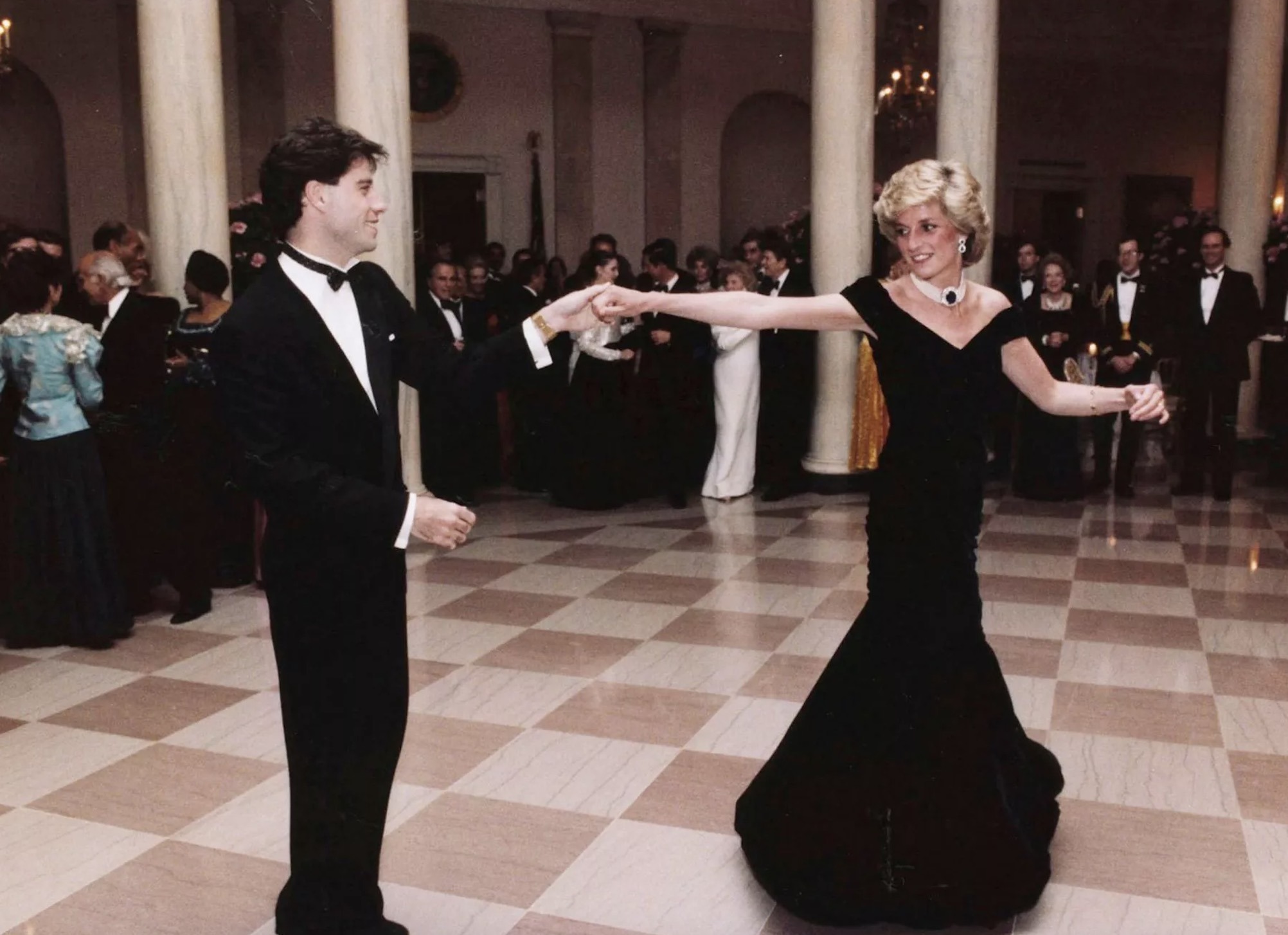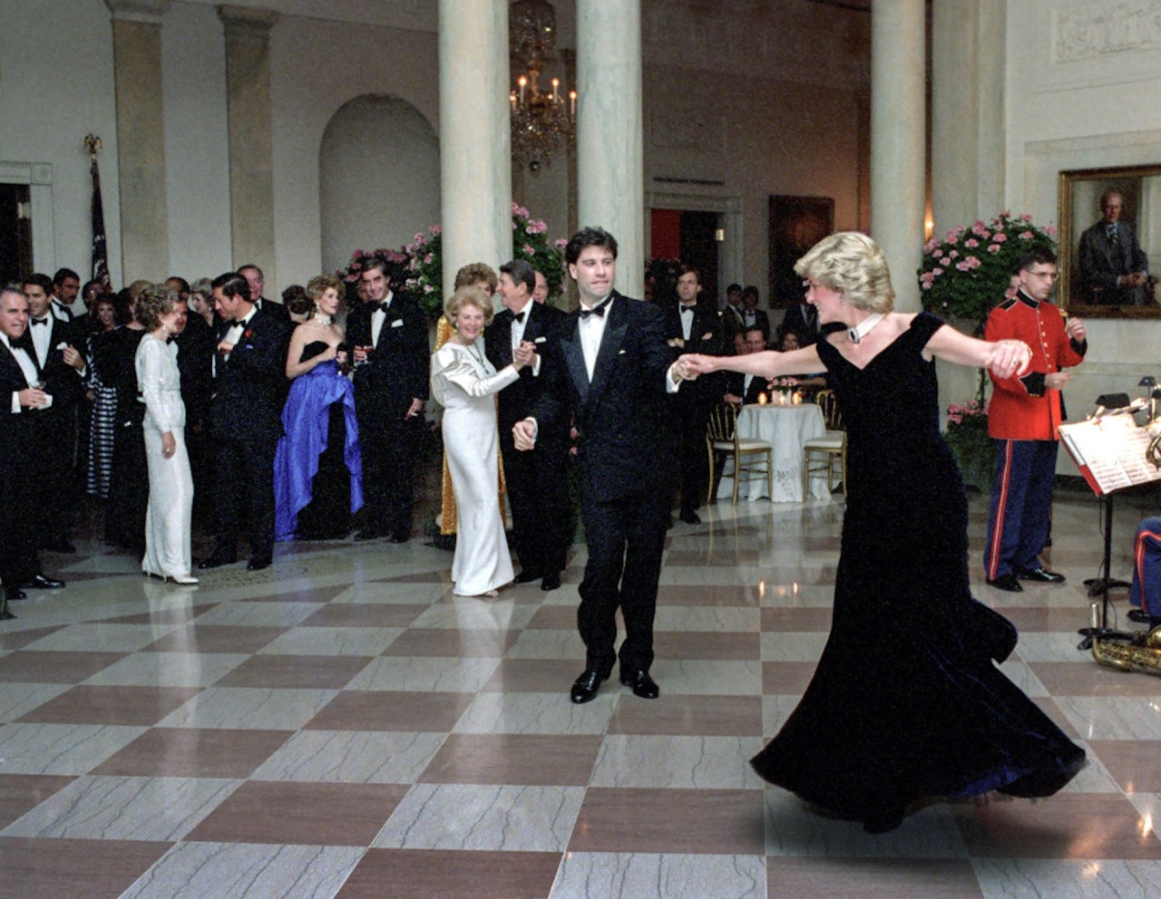 In the evening, the President and First Lady held an Official Dinner and Dance at the White House, during which the Princess Of Wales (wearing her Sapphire Choker), famously danced with John Travolta.
