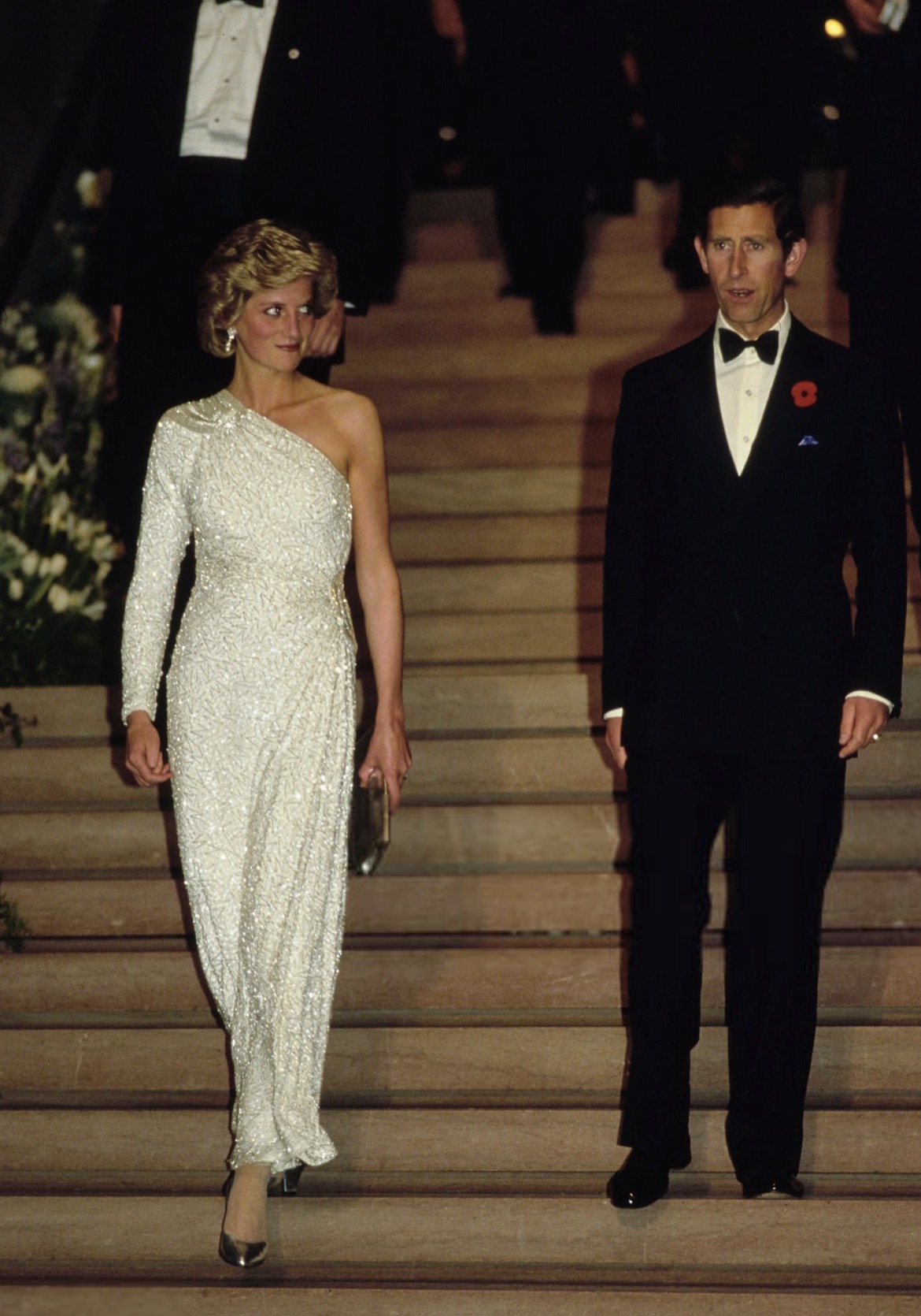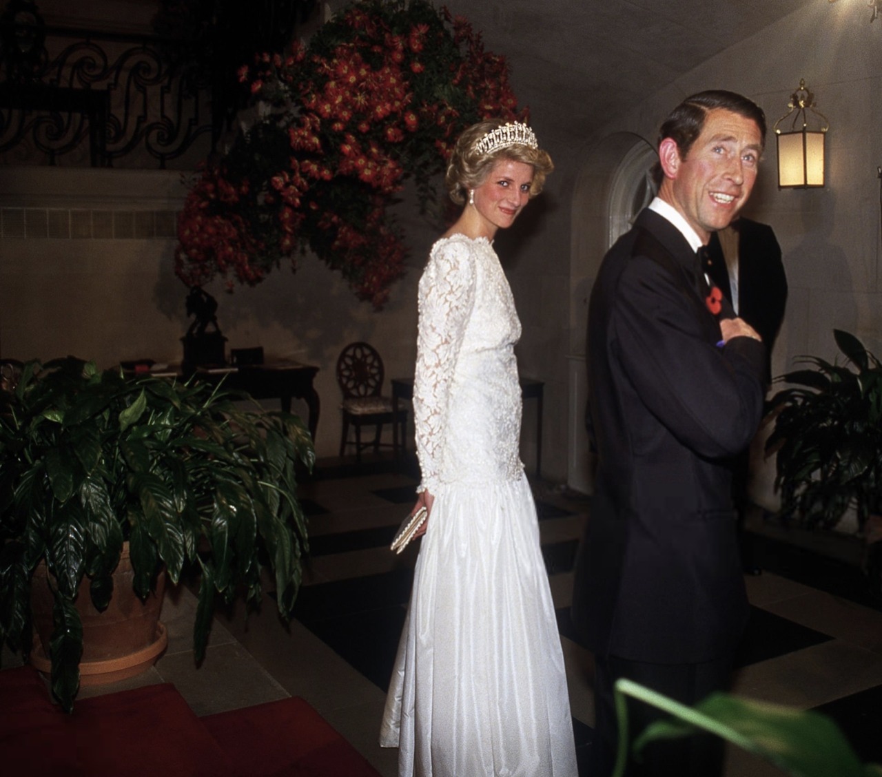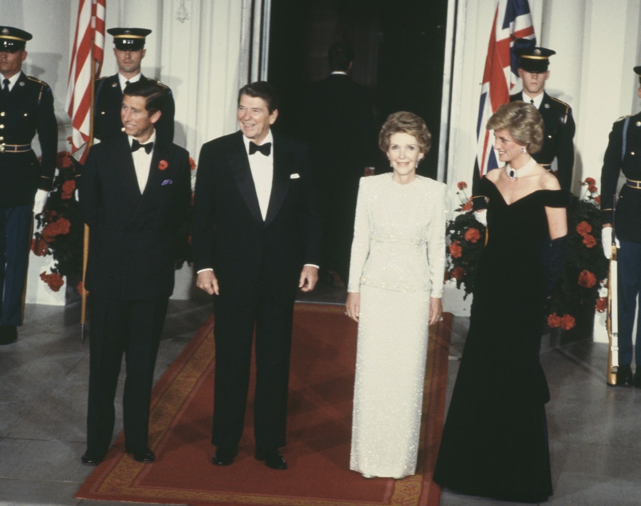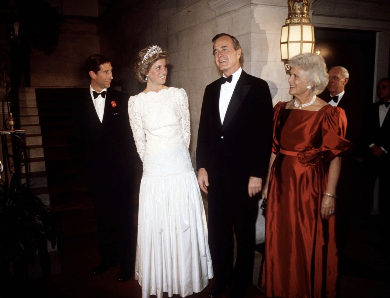 The next day, the couple visited the National Gallery of Art and a JC Penny Store, before the Prince and Princess of Wales (wearing Queen Mary’s Lover’s Knot Tiara) hosted then Vice-President George Bush and Barbara Bush at an official dinner at the British Ambassador’s Residence.
