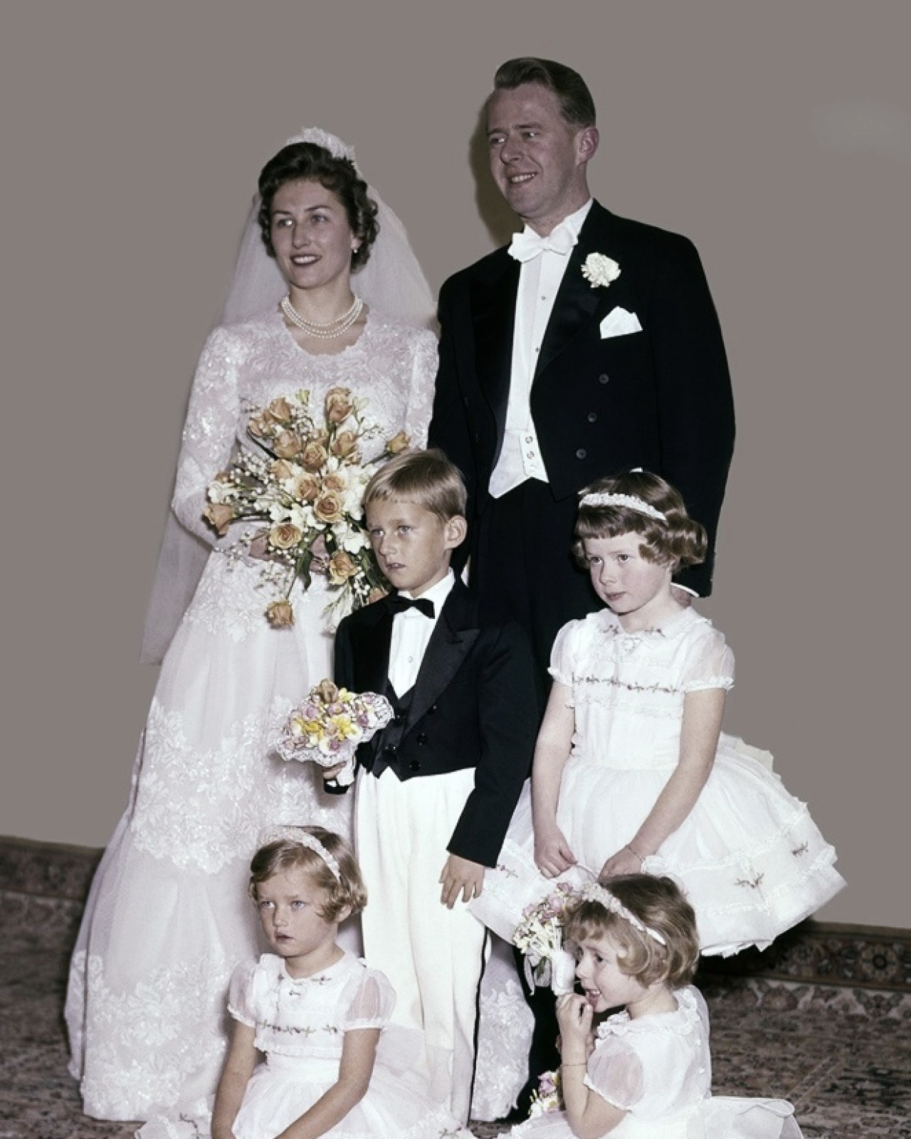 Royal Guests and Relatives were led by King Olav V of Norway (father) and Princess Dagmar of Denmark (great-aunt, in her Diamond Floral Tiara).