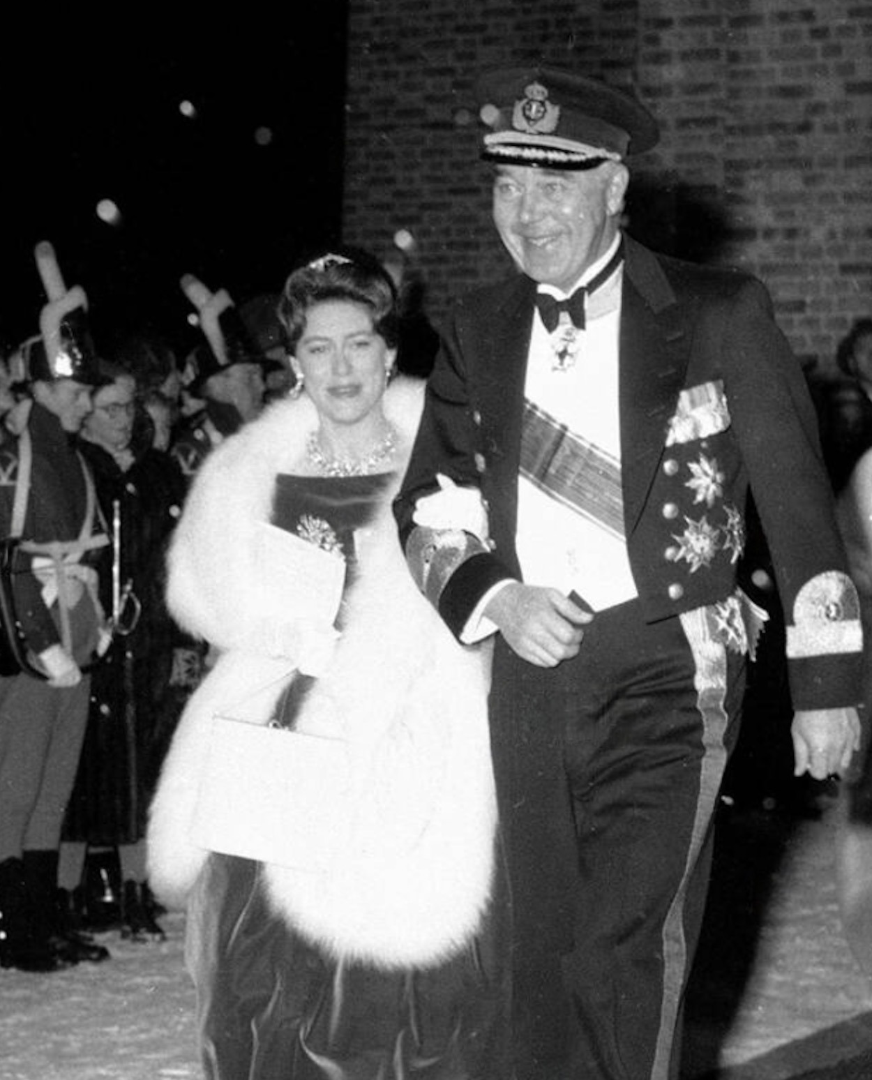 Princess Margaret (distant cousin, wearing Empress Maria Feodorovna’s Sapphire Bandeau) and Prince Bertil of Sweden (distant cousin)