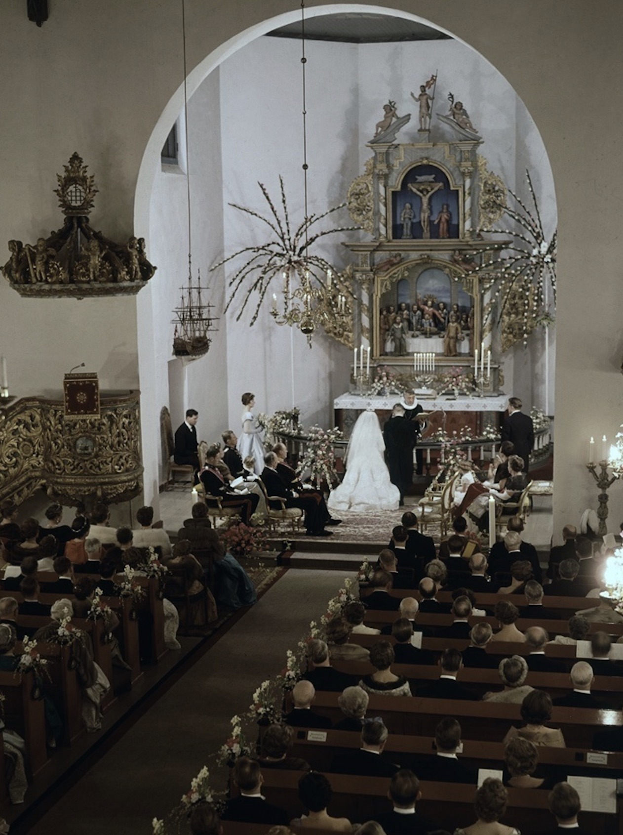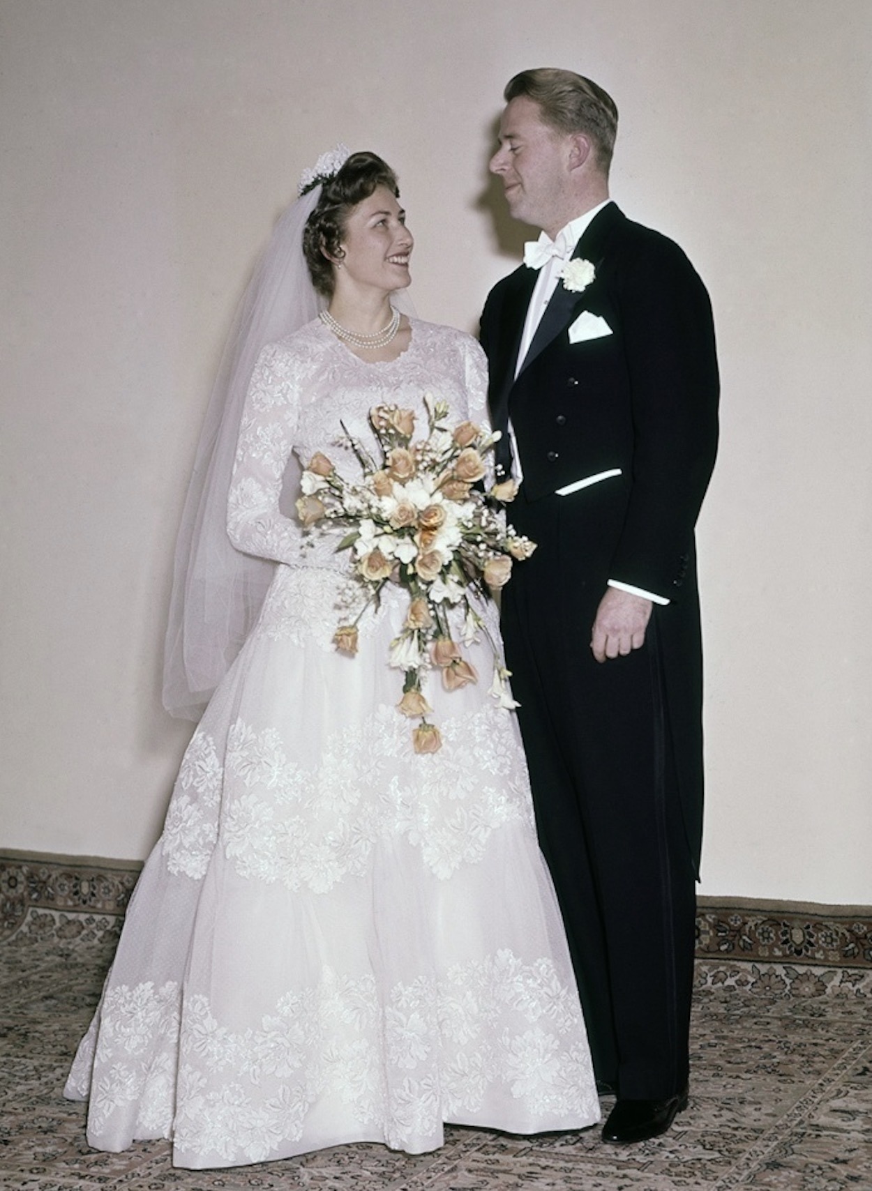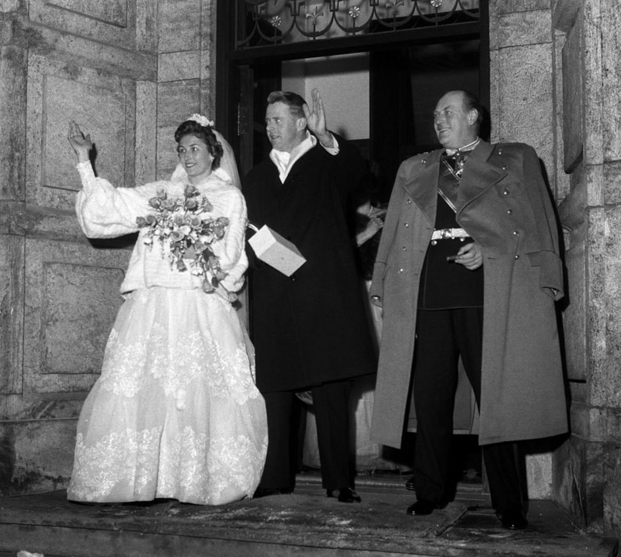 Royal Guests and Relatives gathered from around Europe to celebrate the Wedding of Princess Astrid of Norway and Johan Martin Ferner at the Church in Asker on this day in 1961, 65 years ago, just a month after the Wedding of her first cousin, King Baudouin of Belgium.