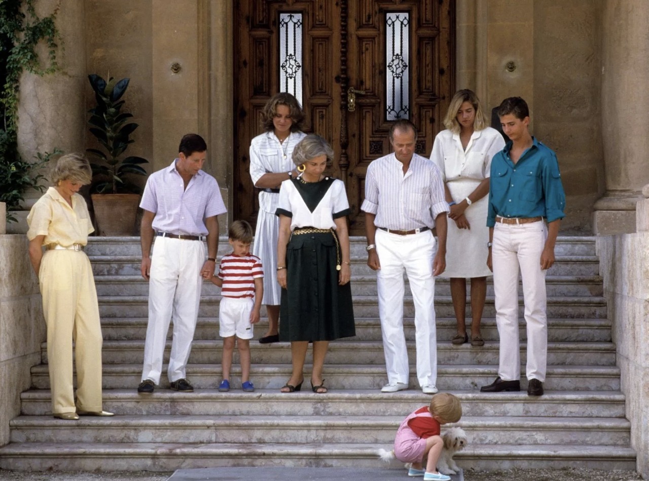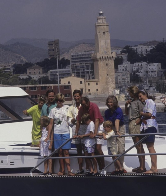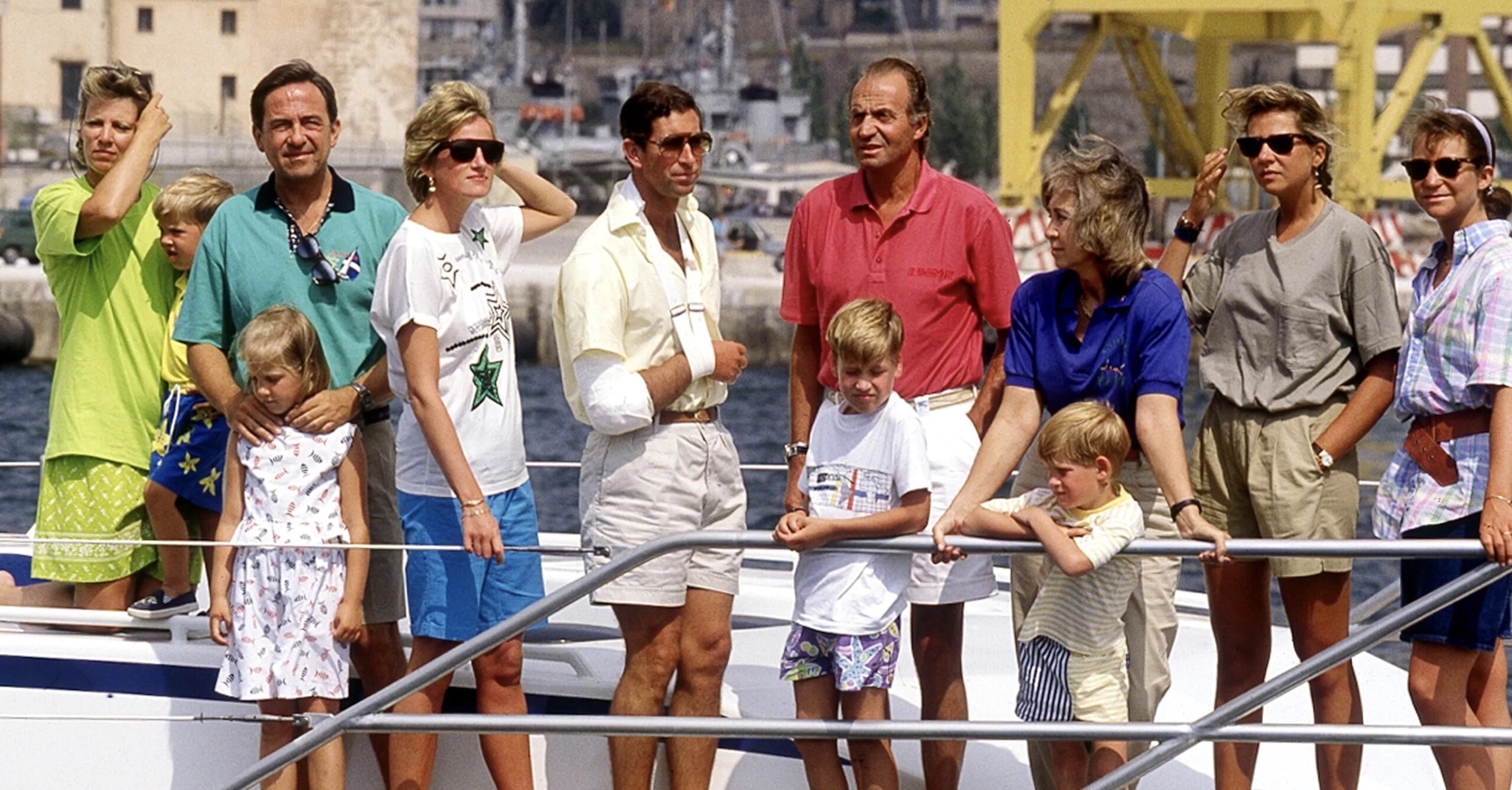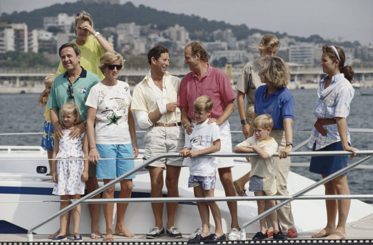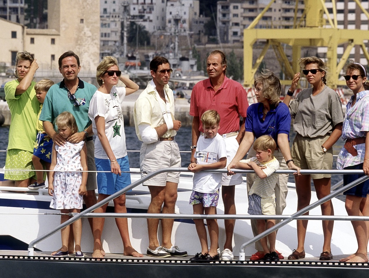 The Prince and Princess of Wales, Prince William, and Prince Harry joined the Spanish and Greek Royal Families on board the Spanish Royal Yacht ‘Fortuna’ in Palma de Mallorca on this day in 1990, 35 years ago, on the last of their four annual Holidays to Spain!