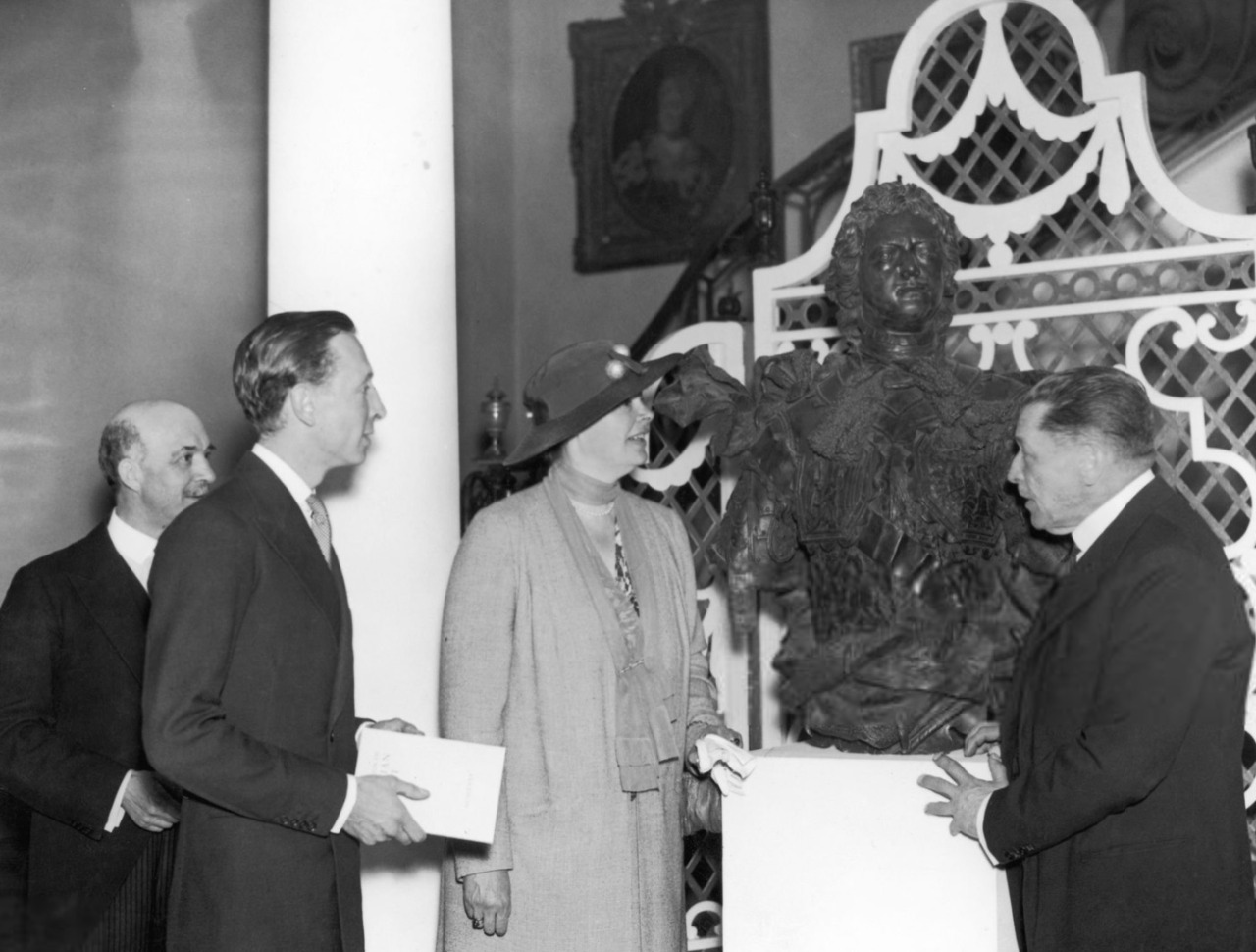 Lord Herbert, the former Crown Princess Cecilie of Prussia and M. Polovtsoff examine a bronze bust of Peter the Great