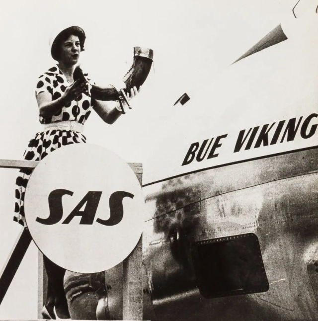 The photographs document the activities of the three 20-something Scandinavian Princesses: Princess (now Queen) Margrethe of Denmark, Princess Astrid of Norway, and Princess Margaretha of Sweden, accompanied by other Scandinavian dignitaries. SAS (now Scandinavian Airlines) was and remains jointly operated by Sweden, Denmark, and Norway.