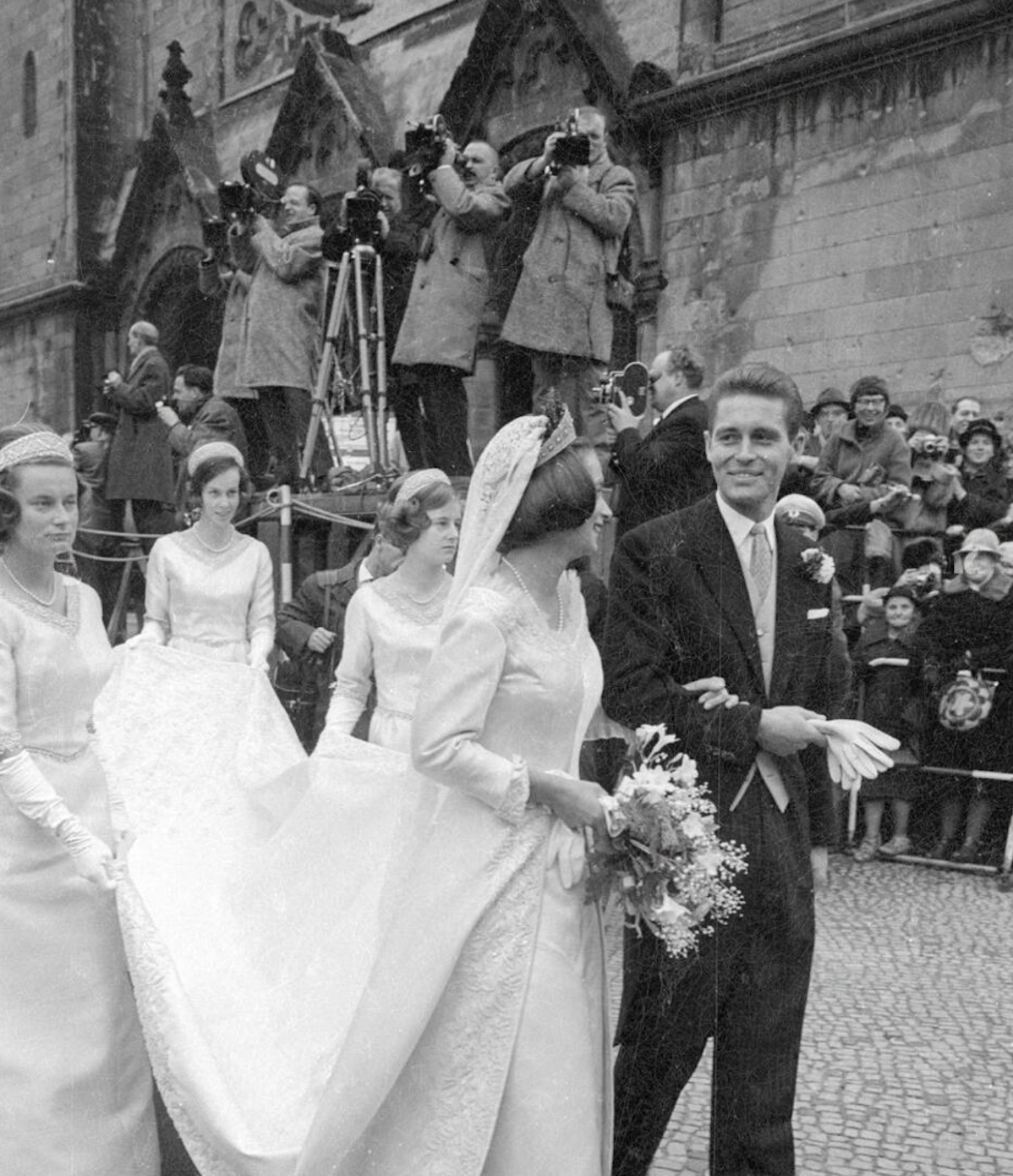 Royal Guests and Relatives gathered to celebrated the Wedding of Princess Marie Cécile of Prussia and Duke Friedrich August of Oldenburg at the Kaiser Wilhelm Memorial Church in Berlin on this day in 1965, 60 years ago, which was the first Royal Wedding held in Berlin since 1913.