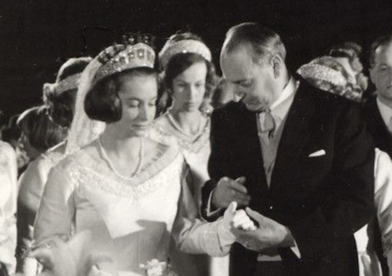 Princess Marie Cécile of Prussia, daughter of the Prince of Prussia and Grand Duchess Kira Kirillovna of Russia, married Duke Friedrich August of Oldenburg at the Kaiser Wilhelm Memorial Church in Berlin, following a Civil Ceremony in the City Hall of Schmargendorf. The couple had three children before their divorce in 1989, two years before he married her widowed sister-in-law.