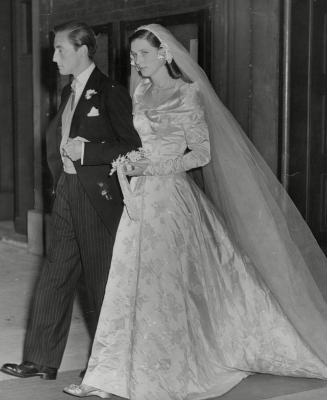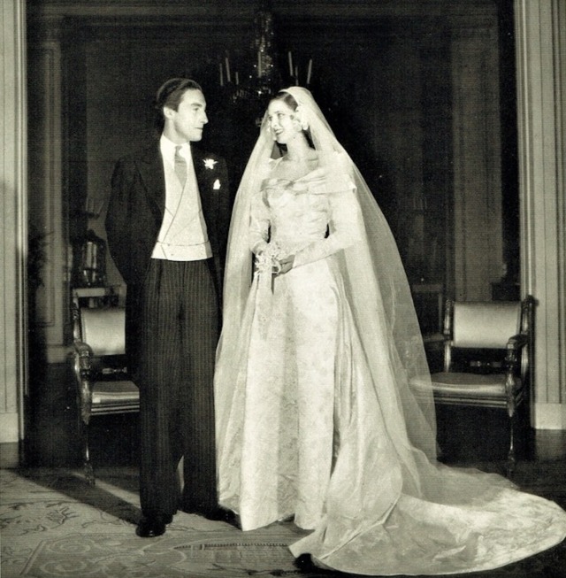 The Royal Family led High Society at the Wedding of David Somerset, the Heir of the Duke of Beaufort, and Lady Caroline Thynne, daughter of the Marquess of Bath, at St Peter’s Church in Eaton Square on this Day in 1950, 75 years ago, before a Reception for 1,000 at the home of Sir ‘Chips’ Channon in Belgrave Square!
