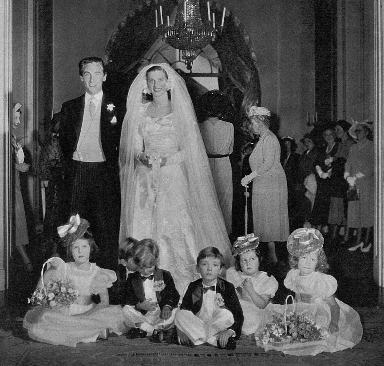 King George VI, Queen Elizabeth, Queen Mary, Princess Margaret and the Duchess of Kent led members of the English Aristocracy at the Wedding.