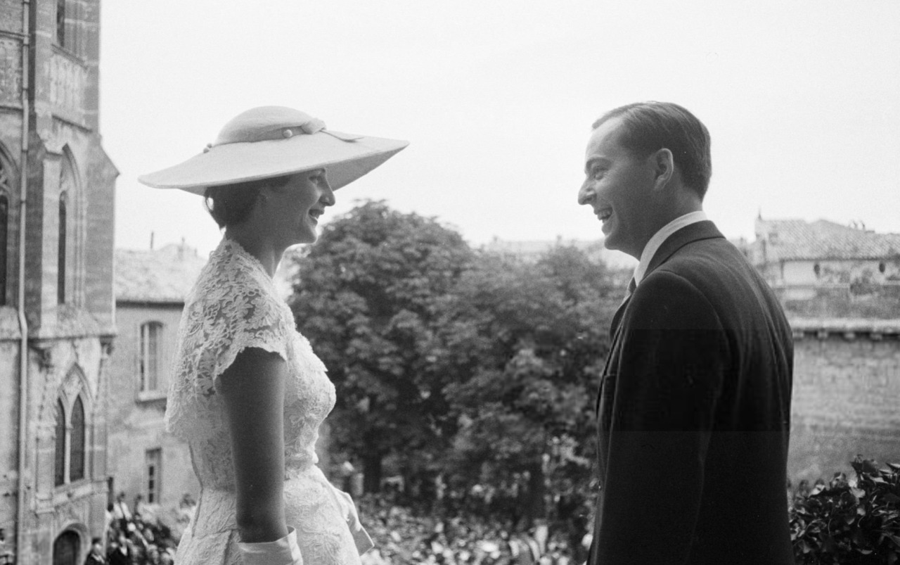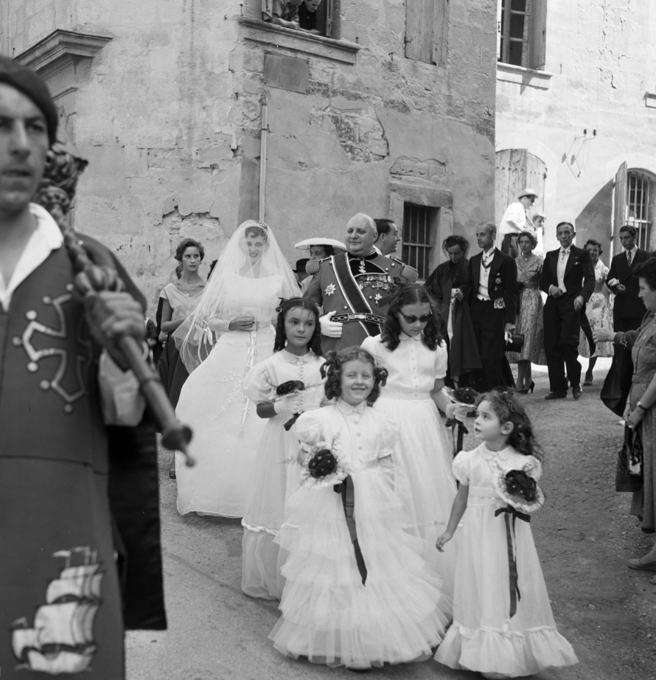 French High Society gathered to celebrate the Wedding of Louis de Crussol d’Uzès, 16th Duke of Uzès and Elisabeth de Belleville at the Château d’Uzès on this day in 1955, 70 years ago, following a Civil Ceremony at the Town Hall.