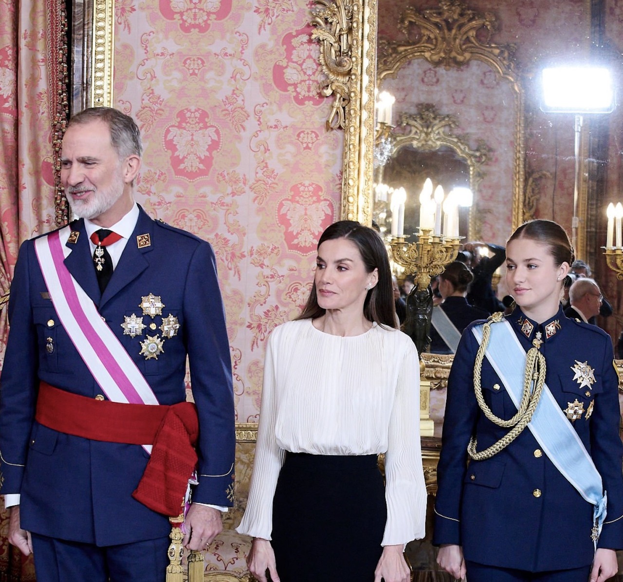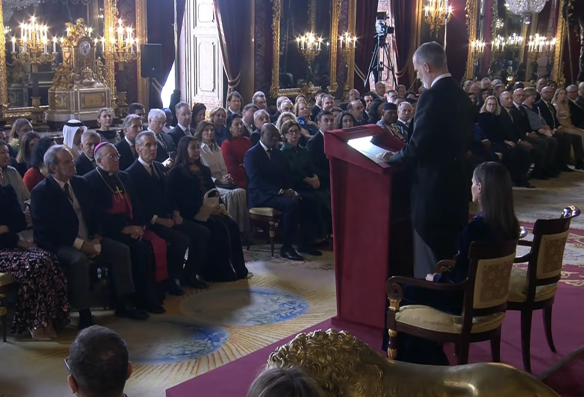 Afterwards, the King gave his annual speech in the Throne Room of the Royal Palace of Madrid. Later, the King and Queen attended a Reception in the Hall of Columns.
