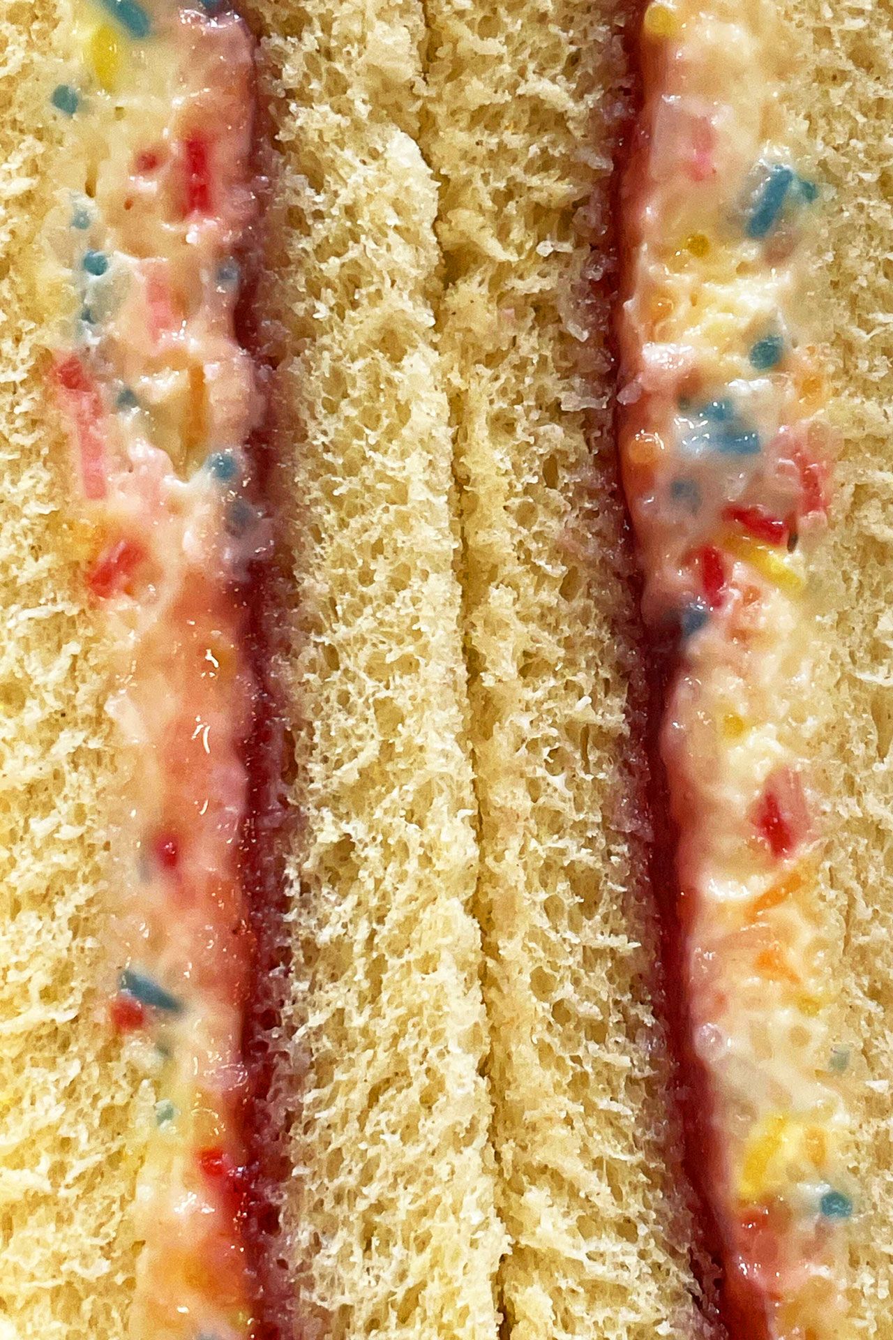 All in all, it’s safe to say that this ‘sandwich’ tasted like nothing we’ve ever come across before, for better or for worse. Any joy that could be taken from the sprinkles is lost to the cream cheese and jam filling, which almost curdle into one another.