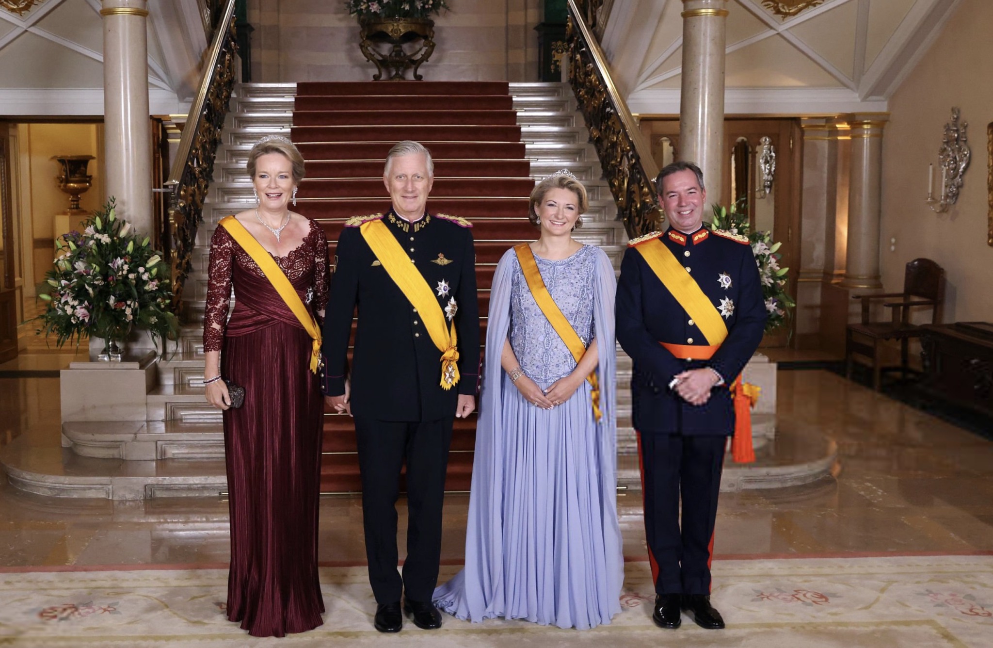 King Philippe and Queen Mathilde of Belgium are hosting Grand Duke Guillaume and Grand Duchess Stéphanie of Luxembourg on their Introductory Visit to Belgium on October 24th, just a few weeks after the Accession of Grand Duke Guillaume V of Luxembourg.