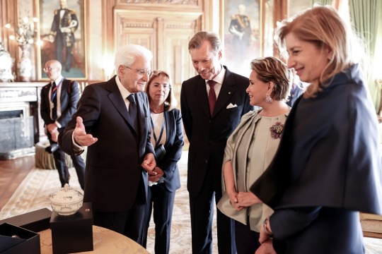 President Sergio Mattarella of Italy and his daughter, Laura Mattarella,  were welcomed by Grand Duke Henri and Grand Duchess Maria Teresa in an Official Welcome Ceremony outside the Grand Ducal Palace, followed by an exchange of Official Gifts.