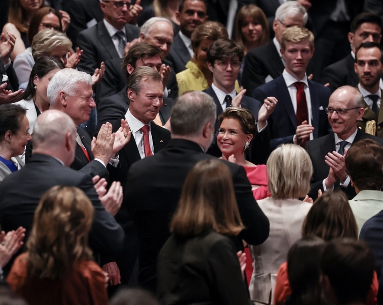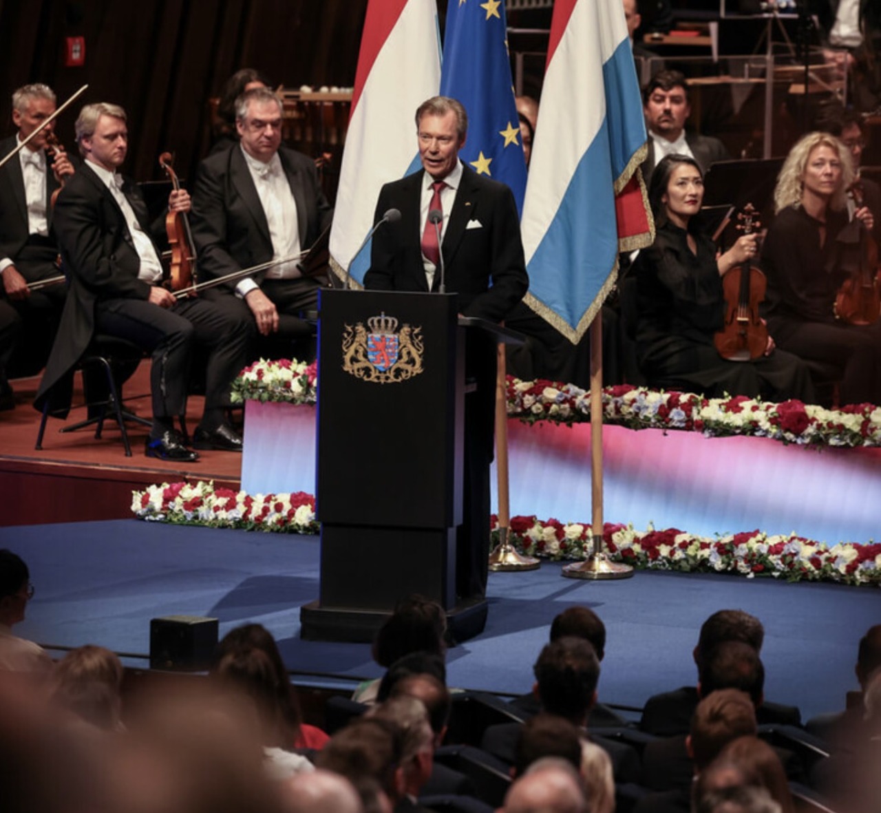 On National Day, Grand Duke Henri and Grand Duchess Maria Teresa, accompanied by Hereditary Grand Duke Guillaume and Hereditary Grand Duchess Stéphanie, Prince Felix, Prince Louis, Princess Alexandra, and Prince Gabriel, attended the official National Day Ceremony at the Philharmonie Luxembourg, this year marking the Grand Duke’s Silver Jubilee ahead of his Abdication in October, with the Grand Duke giving a speech: