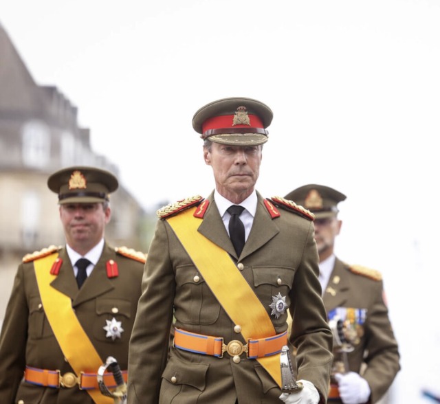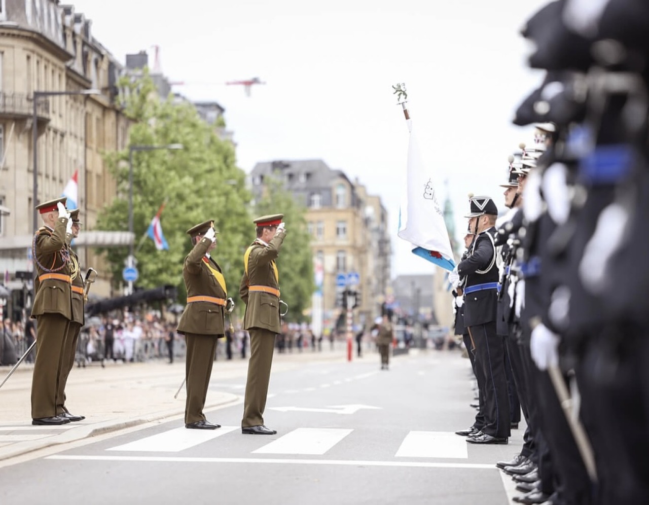 After the ceremony, the Grand Ducal and Hereditary Grand Ducal Couple attended a military parade in the Avenue de la Liberté, where Grand Duke Henri and Hereditary Grand Duke reviewed the guard.