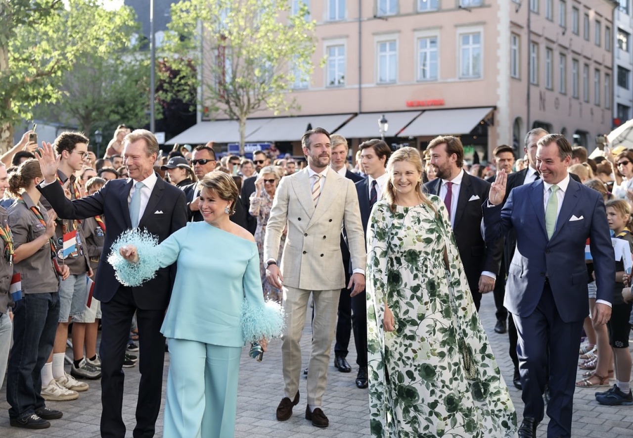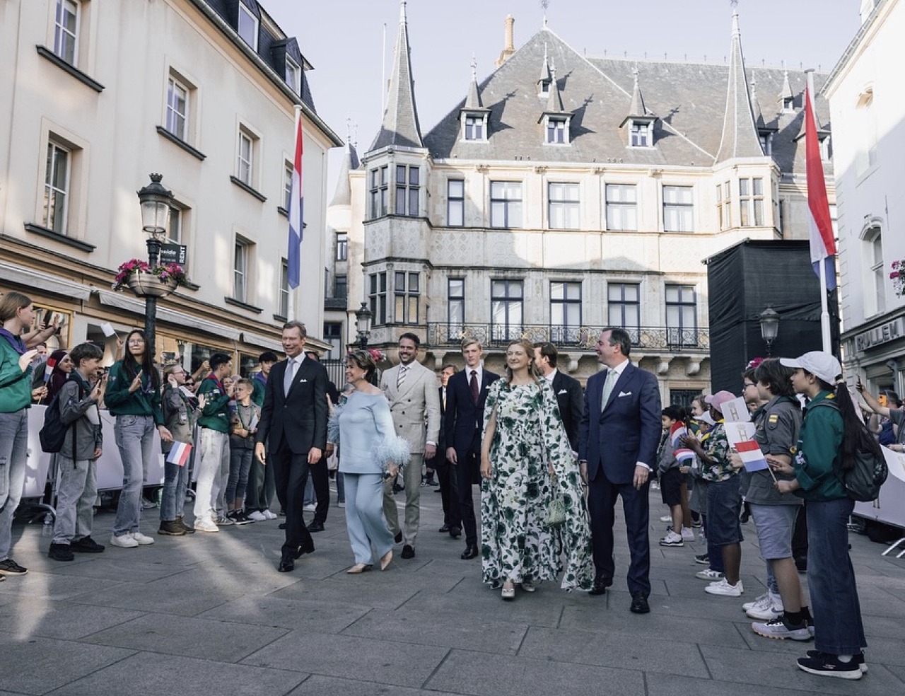 The previous evening, the Grand Ducal Family marked the Grand Duke’s Silver Jubilee with a walkabout on Place Guillaume II and a reception hosted by the City of Luxembourg, concluding with a Sound and Light show in tribute to the Grand Ducal Couple projected onto the façade of the Palais Grand Ducal.