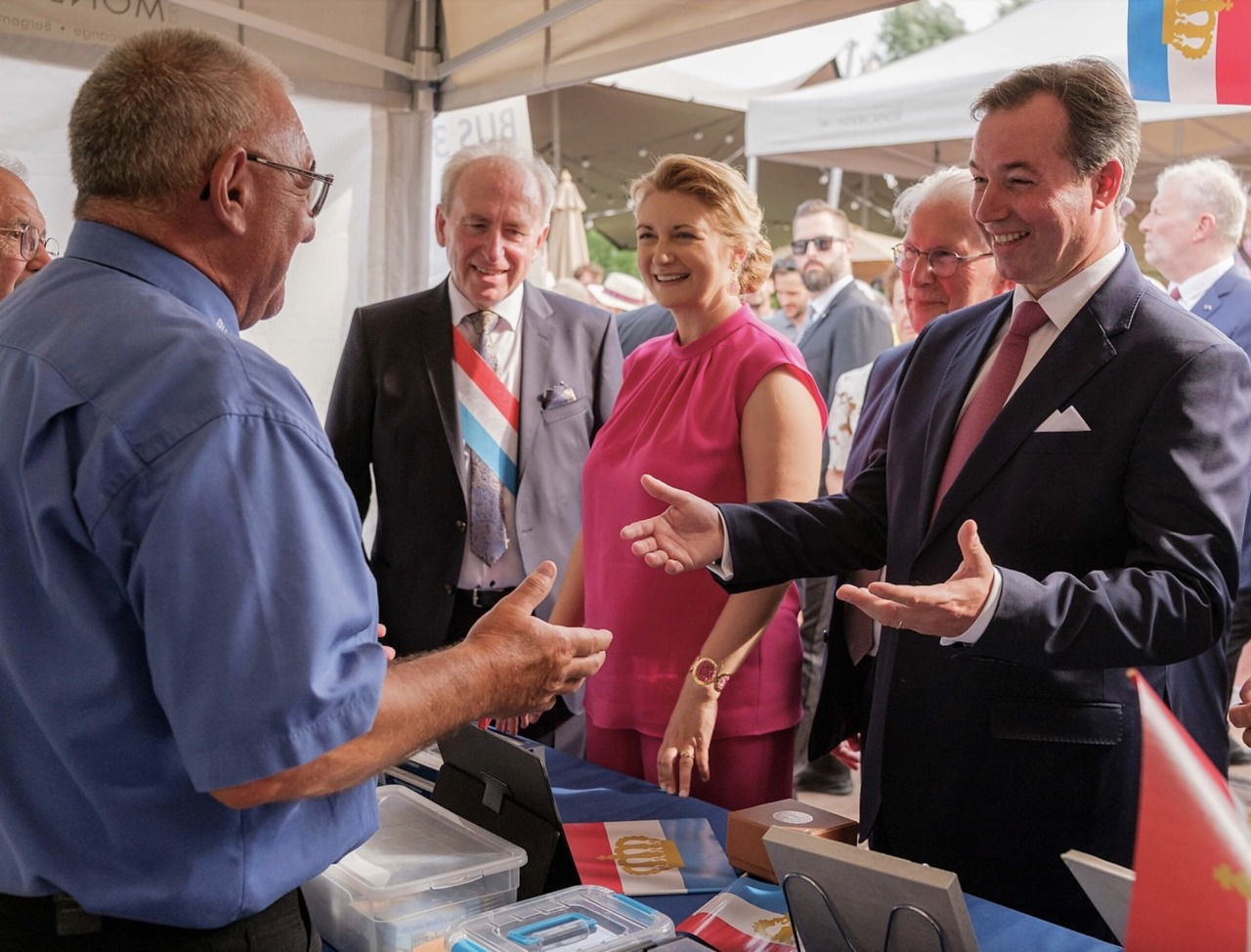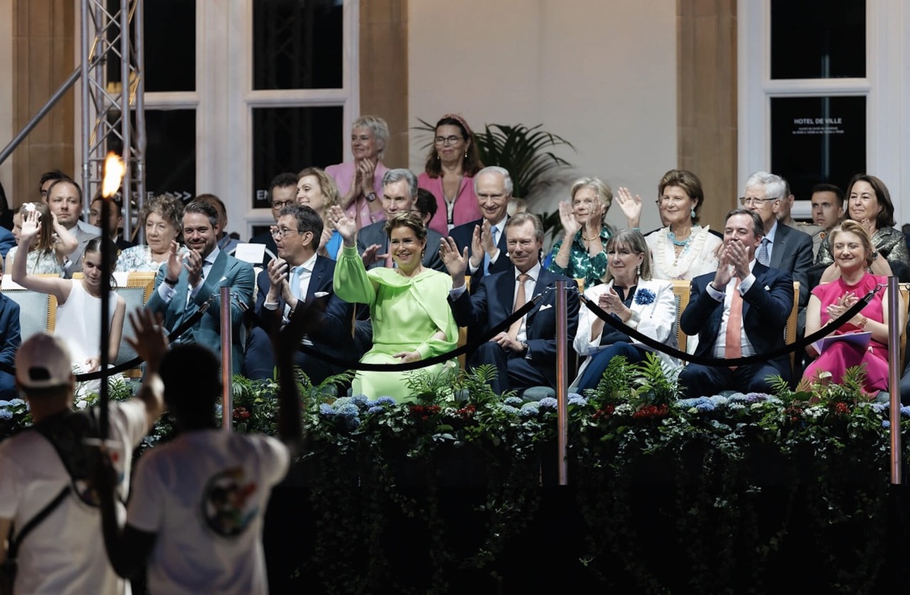 On June 22nd, Grand Duke Henri and Grand Duchess Maria Teresa visited Esch-sur-Alzette while Hereditary Grand Duke Guillaume and Hereditary Grand Duke Stéphanie visited Mondercange, before joining the family for the torchlit retreat and fireworks display from the Place de la Constitution.