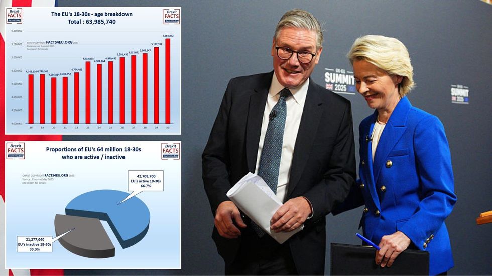 Research by Facts4EU, shared with GB News, shows there are nearly 64 million people in this age bracket across EU member states, according to data from the EU Commission’s official statistics agency.