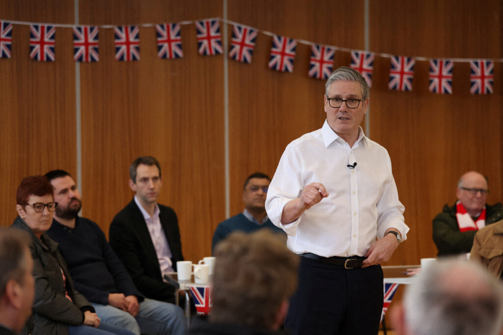 Starmer delivers a speech at a community center in Hertfordshire, England, the day after Monday’s challenge to his leadership. | Pool picture by Suzanne Plunkett/AFP via Getty Images)