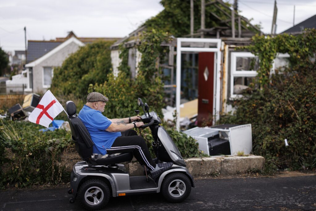 It’s an opinion that resonates in Jaywick. Chennelle Rutland, 56, is walking her two dogs along the beachfront, admiring the view as the sun sets, flaring the sky orange, then purple. The colors catch the surface of the flat sea. “It’s one rule for one and one rule for the other,” she says. “The whites have got to shut up because if you do say anything, you’re ‘racist’ and ‘far right.’”