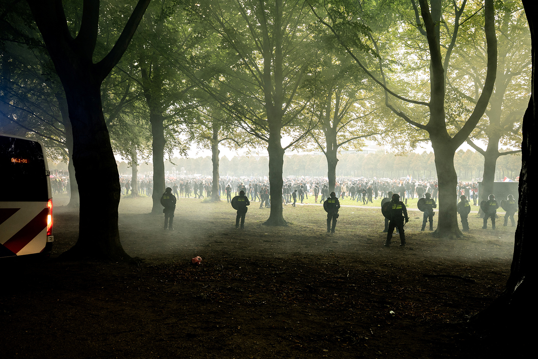 Anti-riot police officers stand next to a demonstration called by far-right activist Els Rechts against the Netherlands’ current asylum policy, in September in The Hague. | Josh Walet/ANP via Getty Images