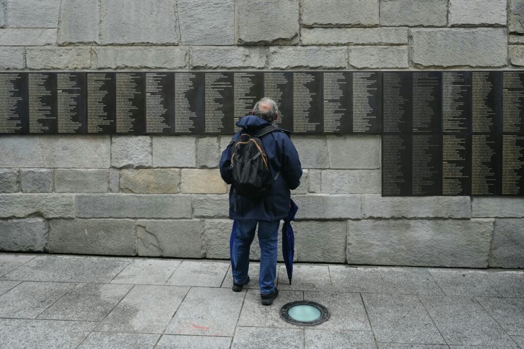 The red handprints painted on the memorial are a symbol used by some pro-Palestinian activists to denounce the war in Gaza. But they are also seen by Jewish groups and scholars as a reference to the killing of two Israeli soldiers during the second Intifada in the 2000s, and a call for antisemitic violence.