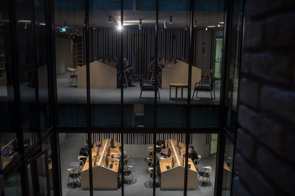 Students at the Central European University’s library in Budapest in 2019. | Chris McGrath/Getty Images