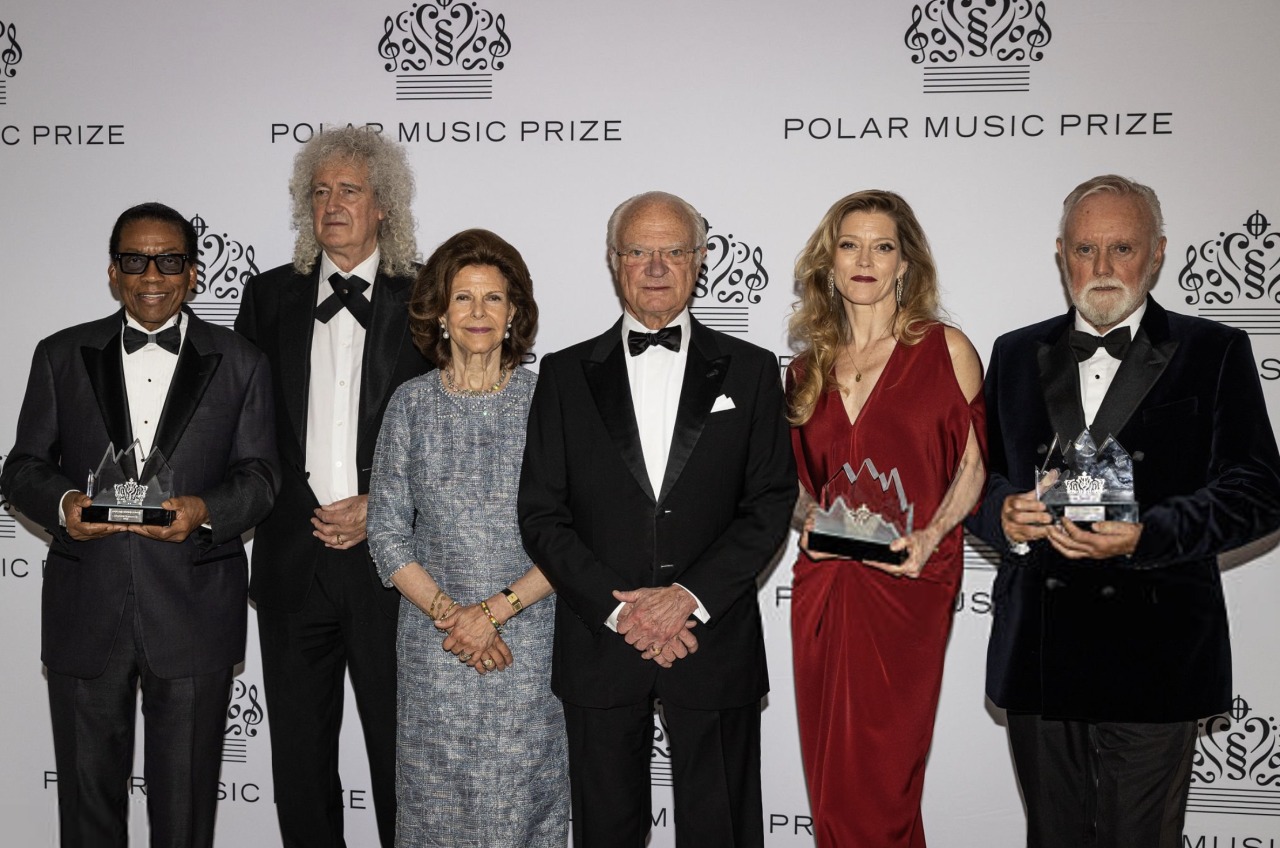 Crown Princess Victoria, Prince Daniel, and Prince Carl Philip joined King Carl XVI Gustaf and Queen Silvia for the Polar Music Prize where the King presented the Prize and one million kronor to rock group Queen, jazz pianist Herbie Hancock and Canadian soprano and conductor Barbara Hannigan.