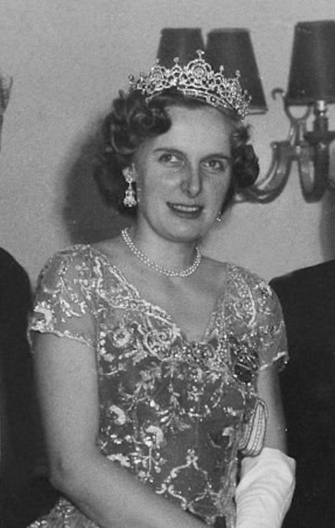 Archduchess Anna-Gabriele’s Diamond Flower Tiara, which seems to have been the one she wore at her own Wedding in 1971, was loaned to her granddaughter, Princess Tatiana Galitzine, for her Wedding in 2017.