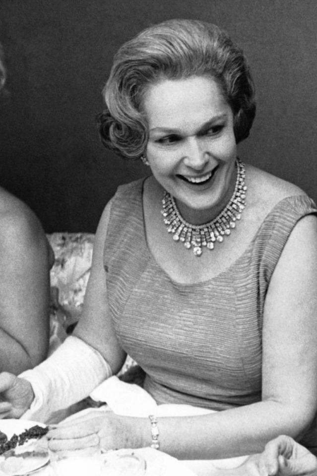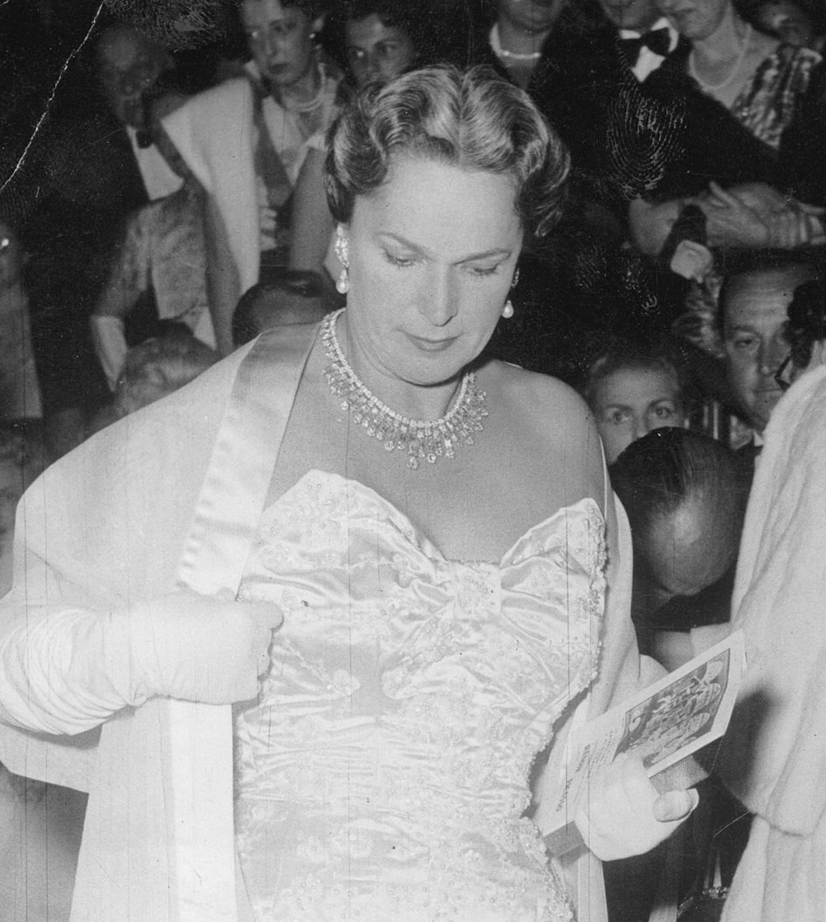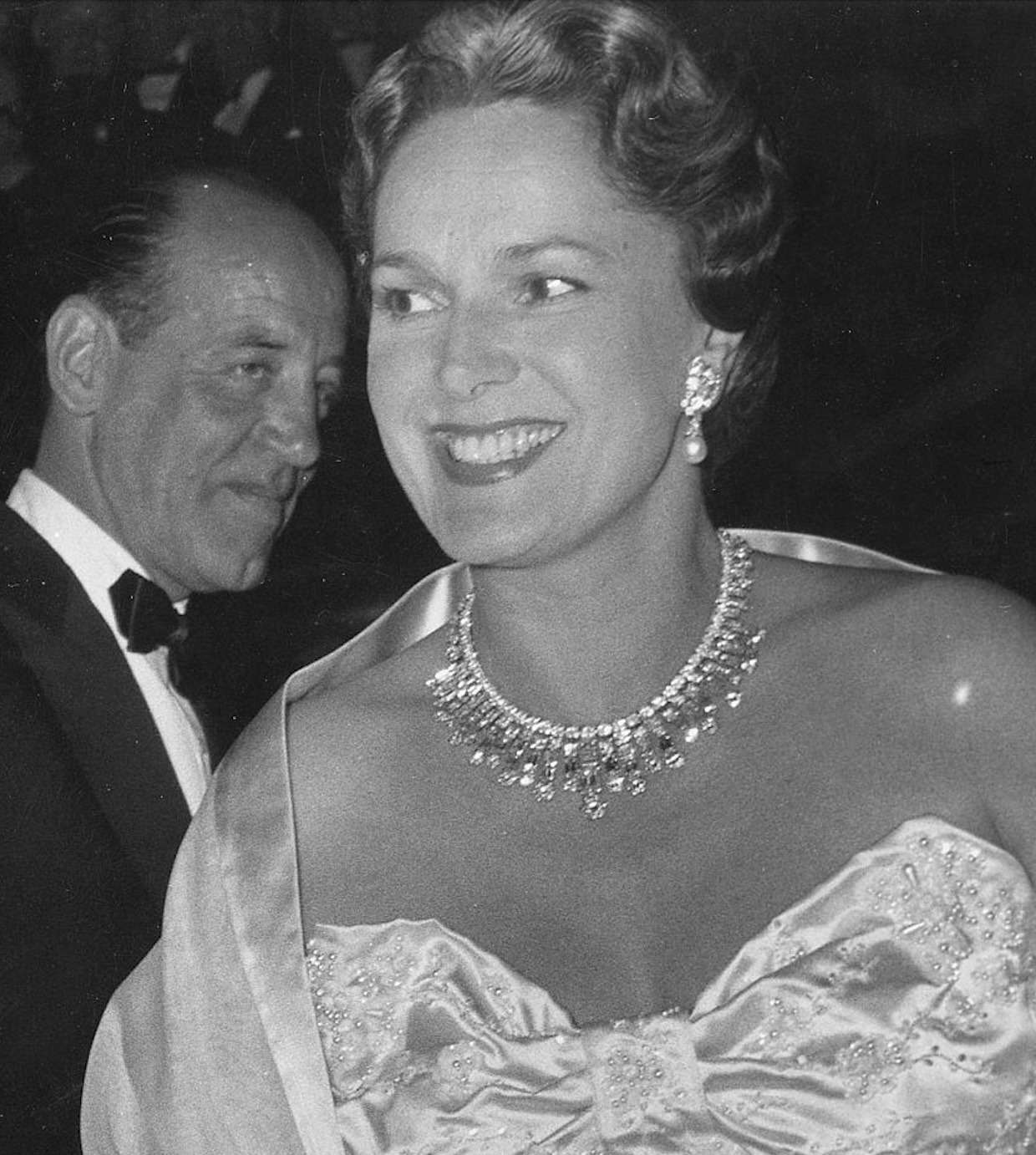 As one of her more substantial pieces, the Diamond Necklace was worn by the Begum Aga Khan at several spectacular events through the 1950s, including the Cannes Film Festival in 1955, Balls in Paris, London and New York City, and also the Cannes Film Festival in 1957.