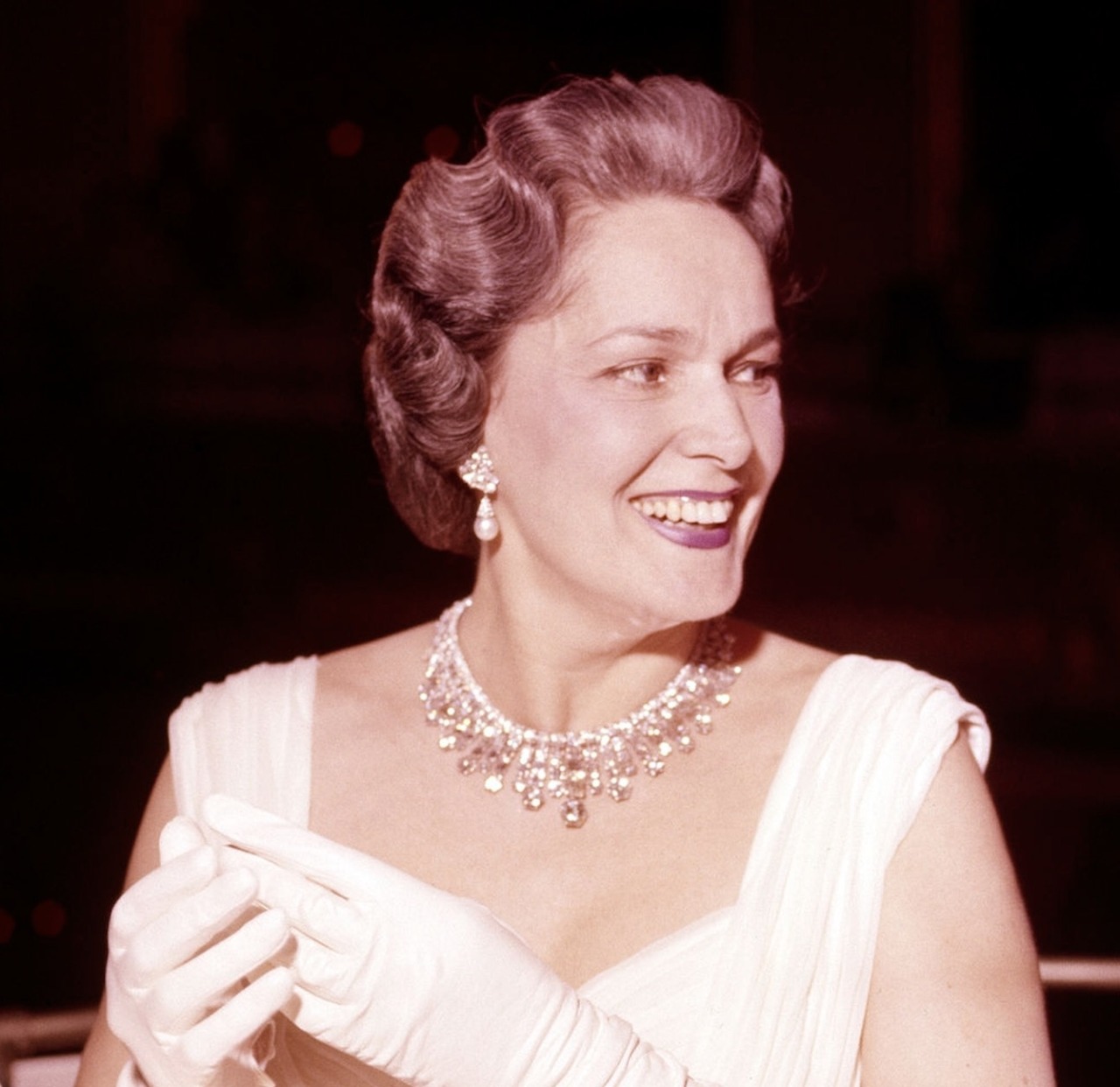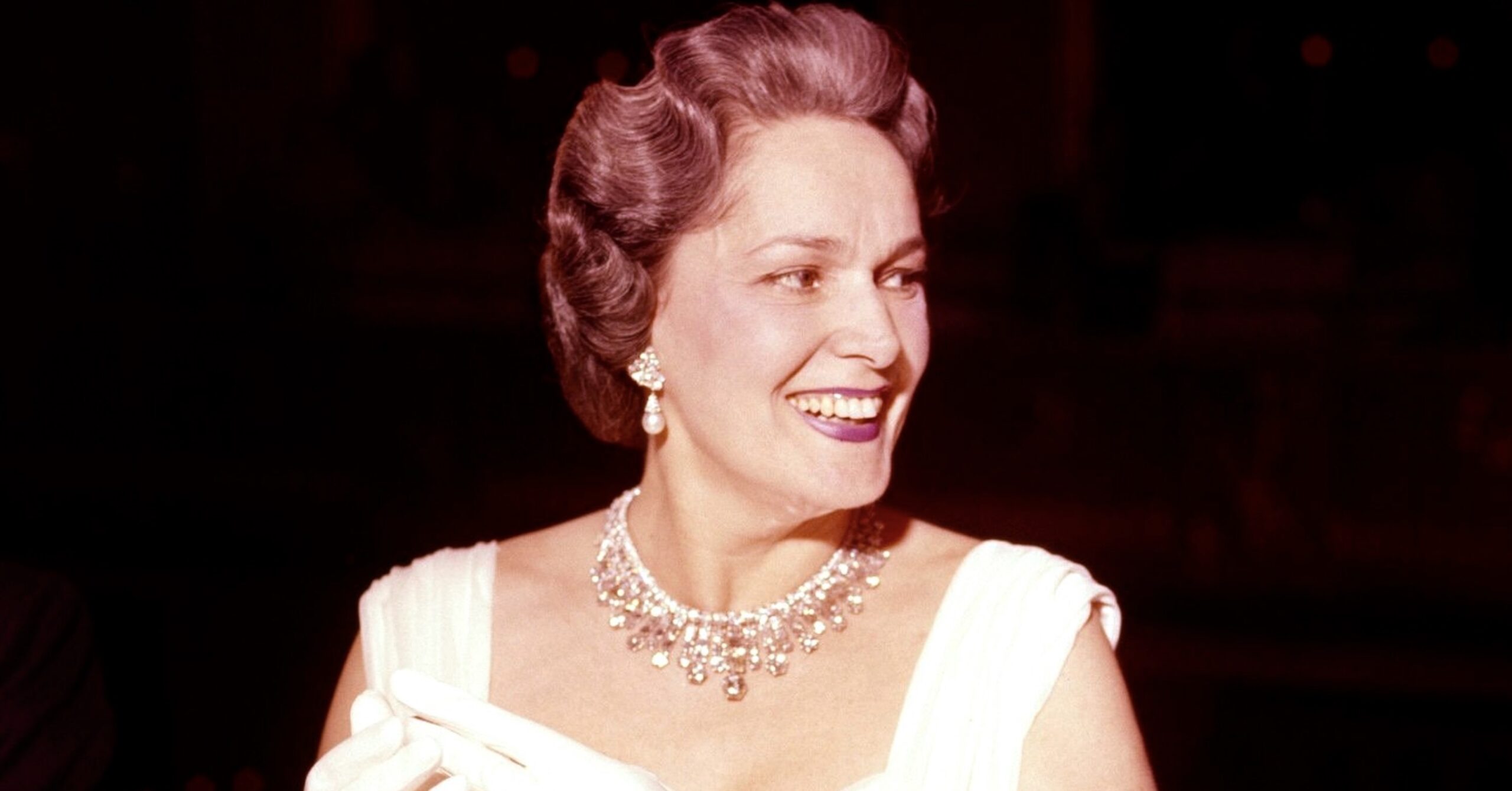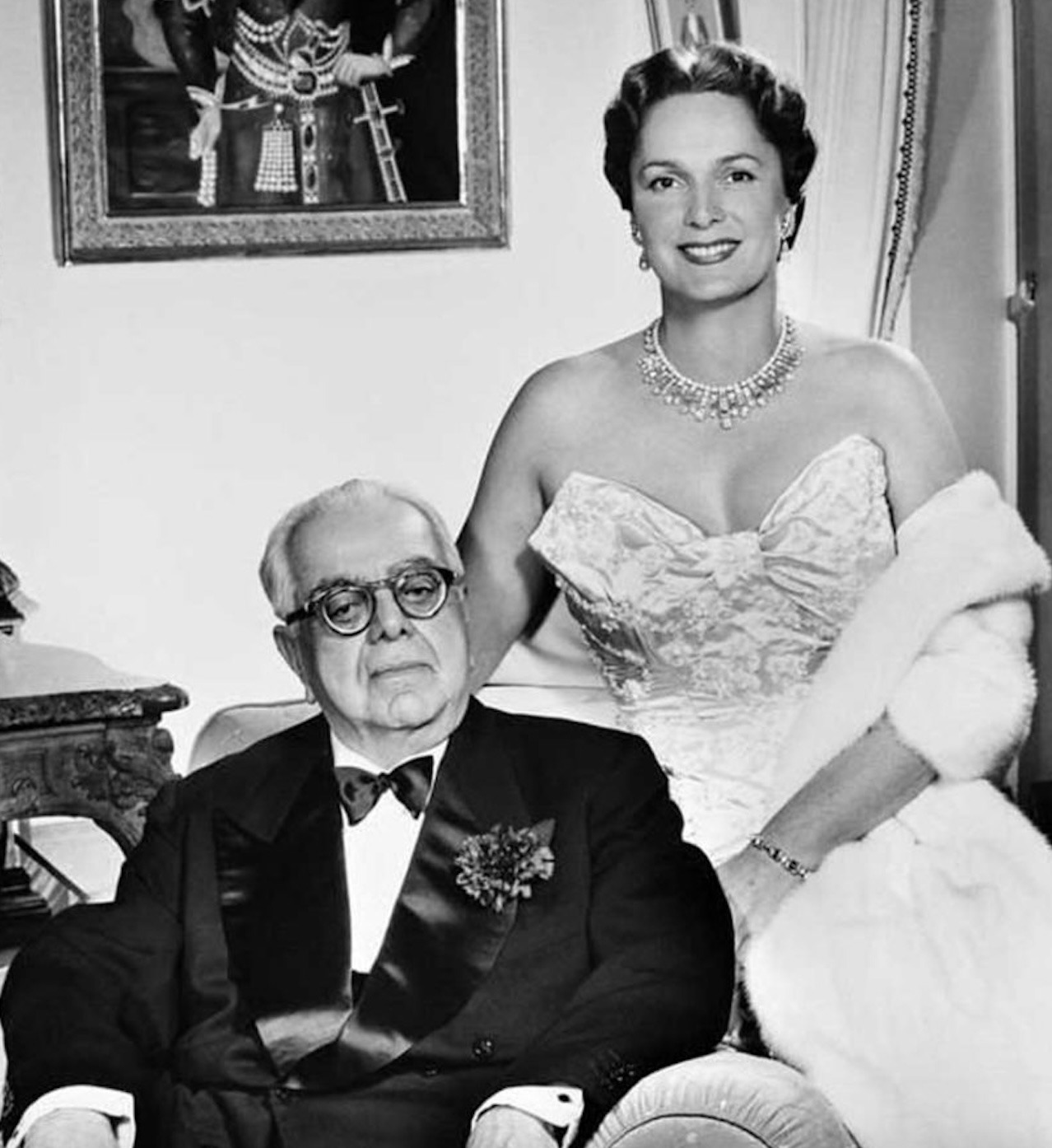 As one of her more substantial pieces, the Diamond Necklace was worn by the Begum Aga Khan at several spectacular events through the 1950s, including the Cannes Film Festival in 1955, Balls in Paris, London and New York City, and also the Cannes Film Festival in 1957.