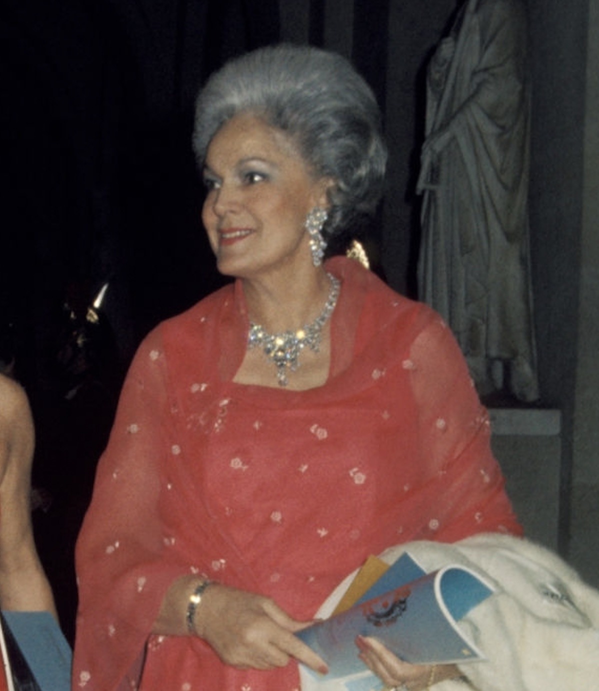 At some point in the mid-to-late 1960s, the Begum Aga Khan had the Diamond Fringe Necklace disassembled to create another necklace of marquise and brilliant-spaced diamonds, this one made of which was notably worn by the Begum for a Ball at the Palace of Versailles in 1973.