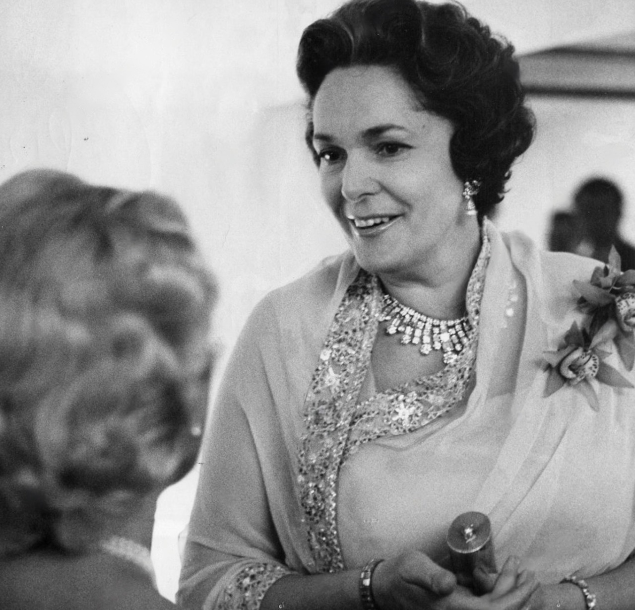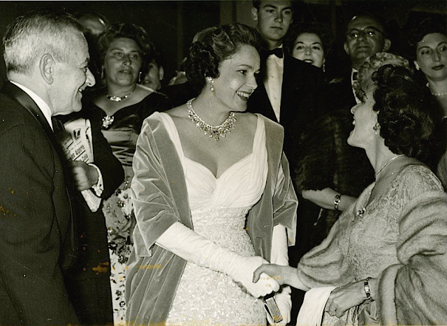 The Begum continued to wear her Diamond Fringe Necklace after being widowed in 1957, like a Premier at the Palais de Chaillot in Paris, the the Cannes Film Festival in 1959, a Gala in New York City in 1960, at a Restaurant in Germany in 1963, and at a Gala in Marbella in 1964.