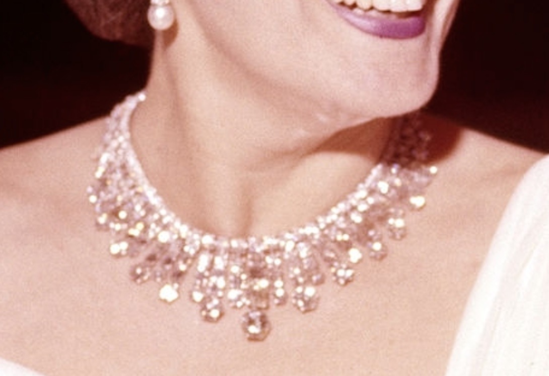 As one of her more substantial pieces, the Diamond Necklace was worn by the Begum Aga Khan at several spectacular events through the 1950s, including the Cannes Film Festival in 1955, Balls in Paris, London and New York City, and also the Cannes Film Festival in 1957.