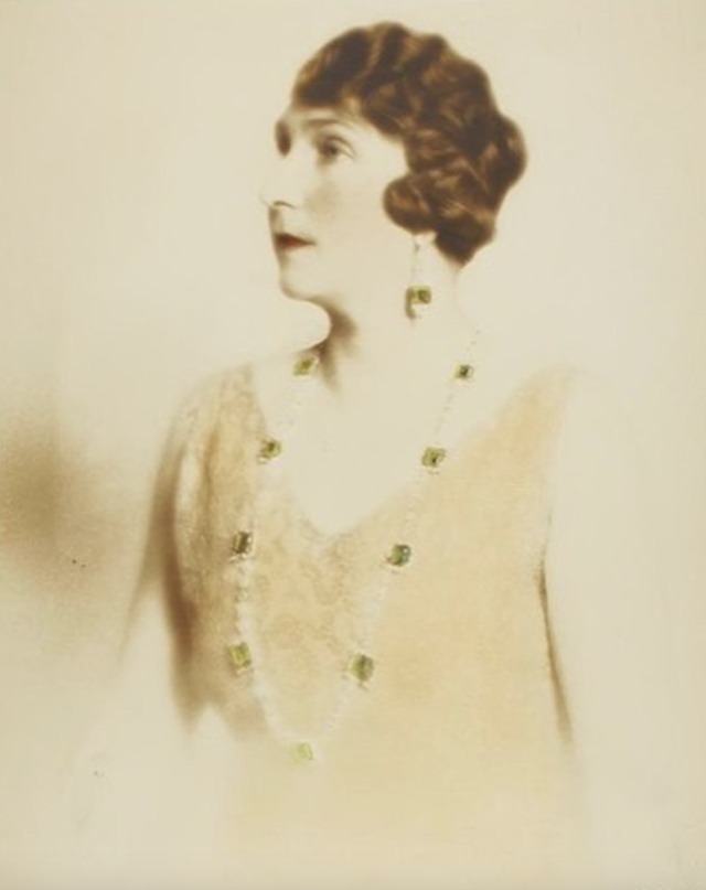Queen Victoria Eugenie had the Emeralds from Empress Eugénie set into a Necklace by the Spanish jeweller, Sanz, which she also wore as a Bandeau for a portrait by Phillip de Lazlo around 1920.