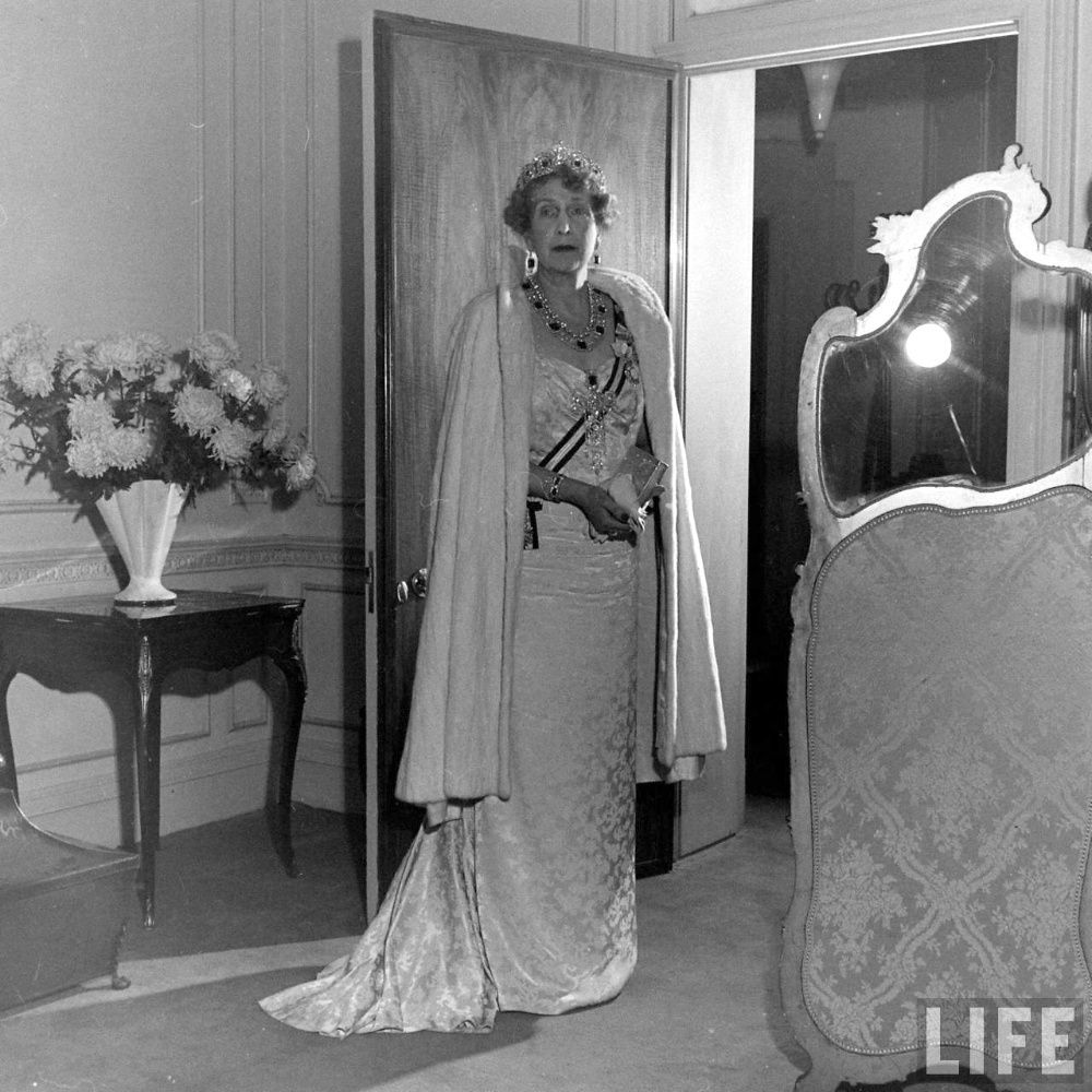Queen Victoria Eugenie also choose to wear Empress Eugénie’s Emeralds with the the Cartier Diamond and Emerald Tiara a few years later, in 1956, for a series of portraits by Nina Leen in Switzerland.