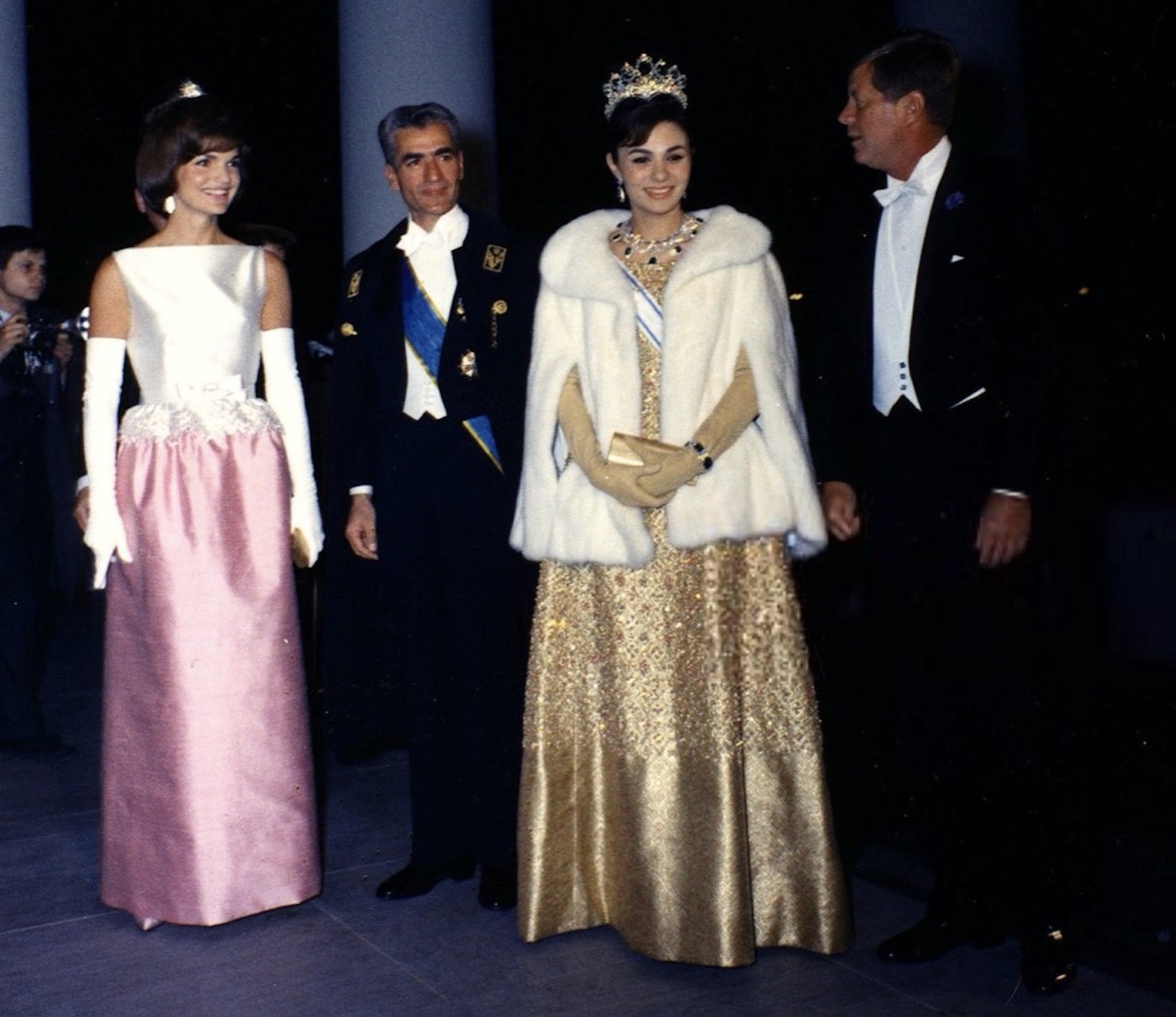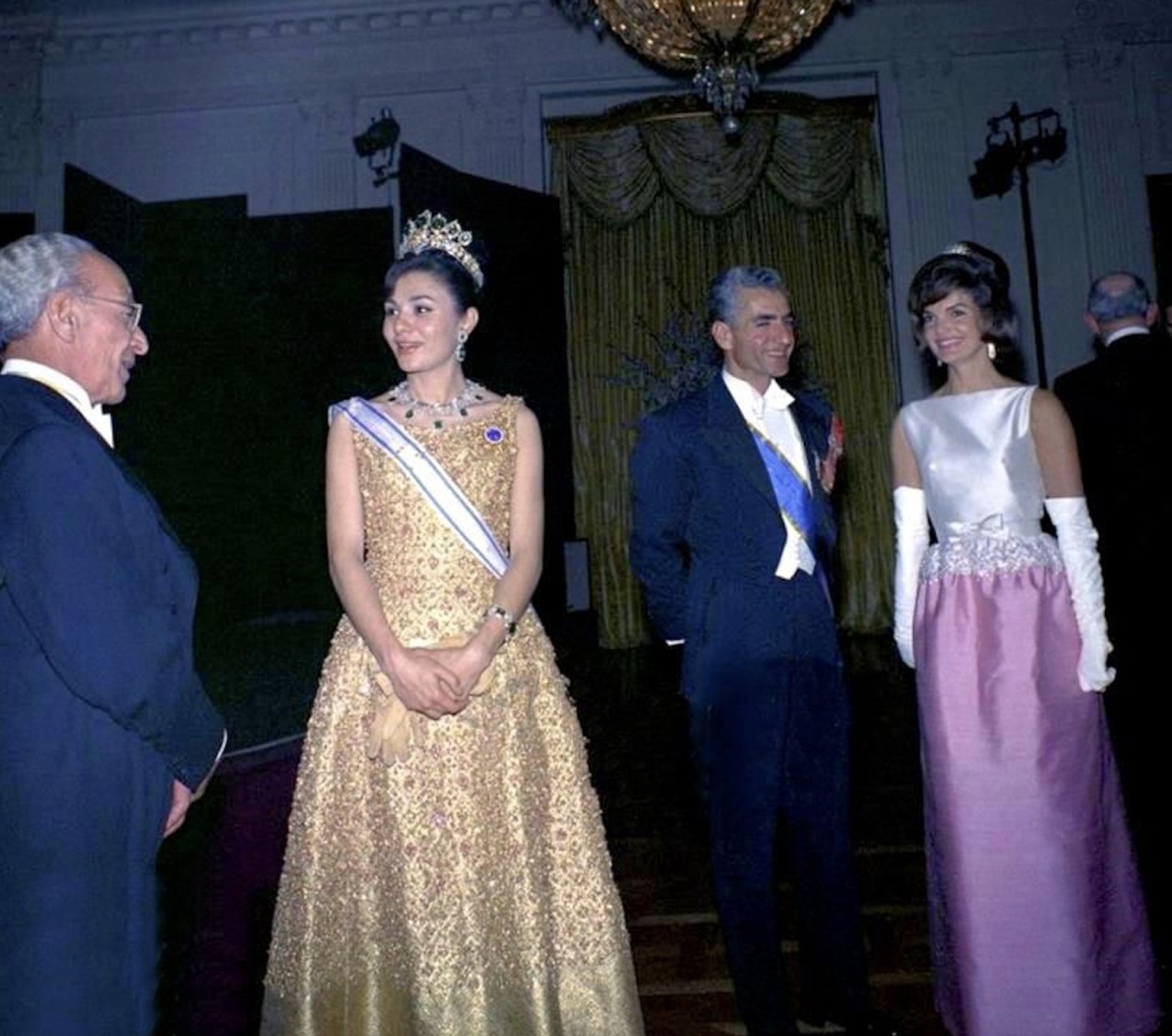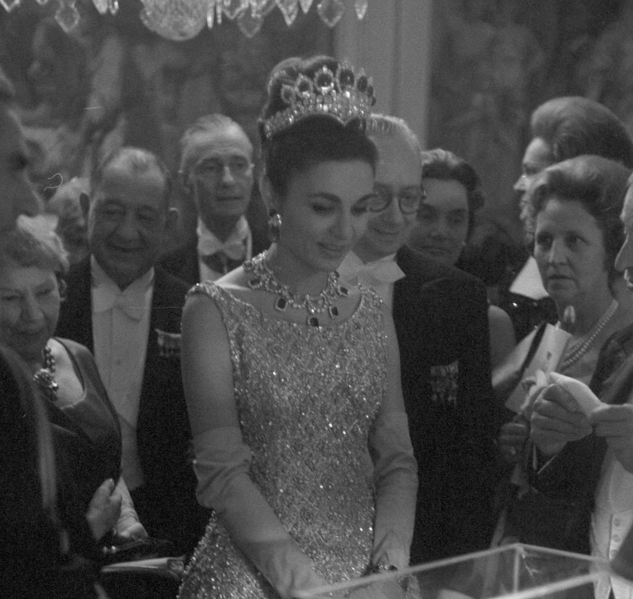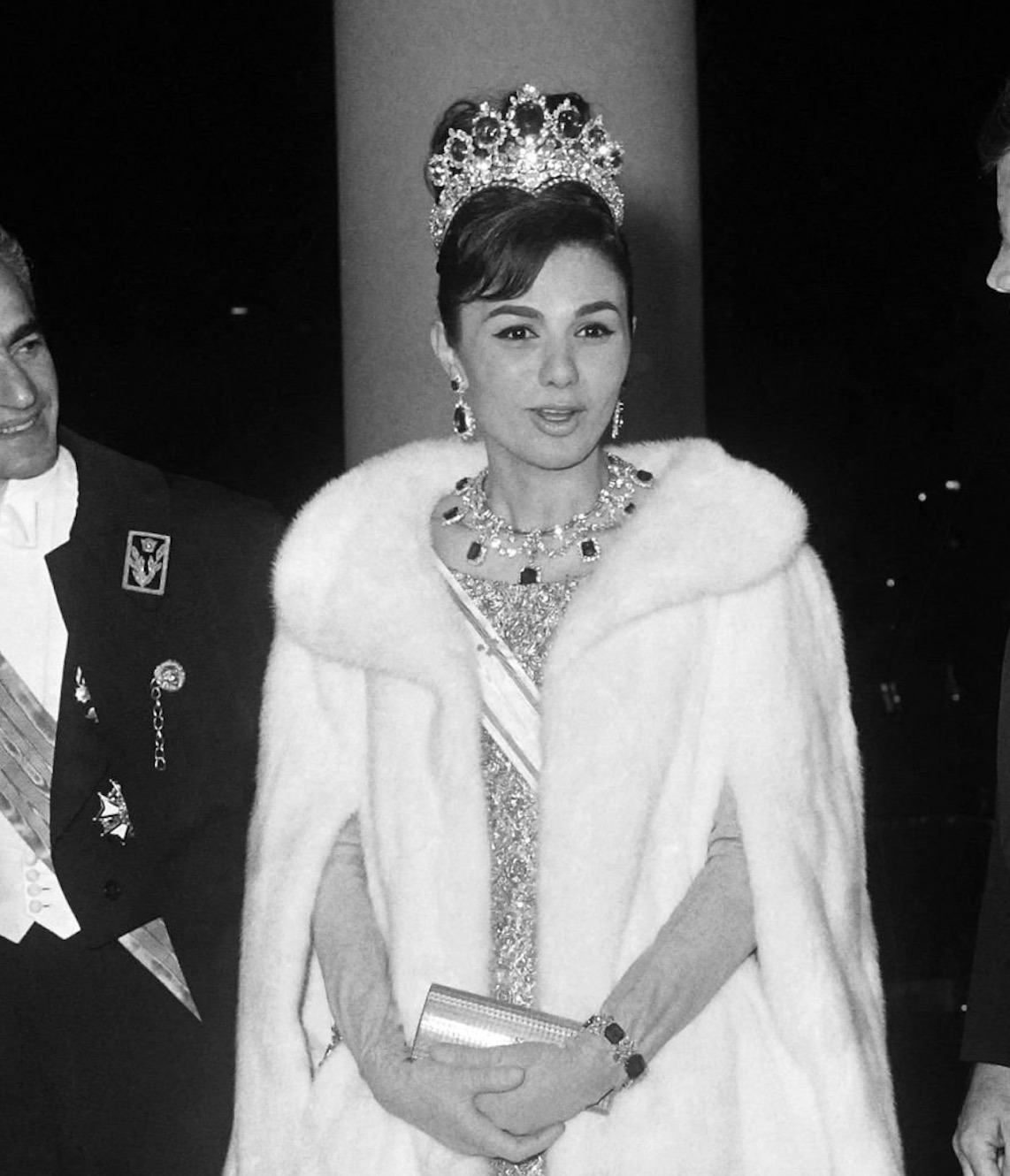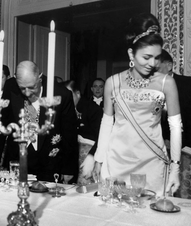 Empress Farah notably wore the Bracelet made from Empress Eugénie’s Emeralds with her Seven Emerald Tiara and the Emerald Necklace on numerous occasions, including the Iranian State Visit to France in 1961 and the Iranian State Visit to the United States in 1962, though appearances had declined by the late-1960s and the Bracelet was not publicly pictured in the years leading up to the Iranian Revolution.