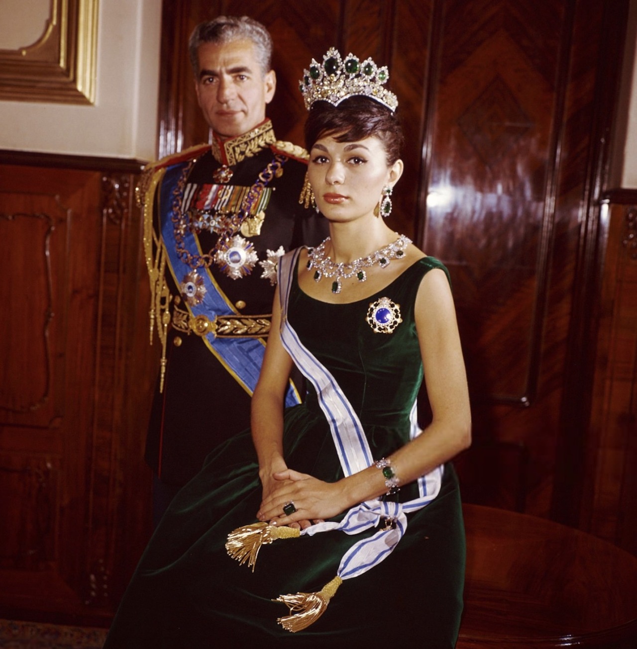 Empress Farah has said that she only ever owned a Turquoise Tiara, which she left in her safe in Tehran when they fled in 1979, and even gave away her pearl necklace to her secretary, and while she has never been pictured wearing grand jewels in several decades of exile, it is possible that the Emerald Necklace and Bracelet were taken out of Iran and discreetly sold?