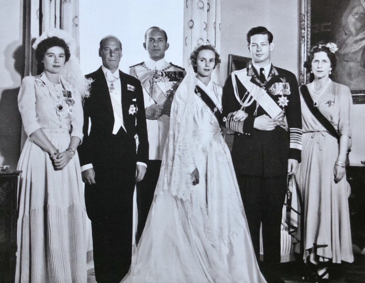 Queen Helen retained the Russian Sapphire Brooch through her numerous exiles and returns to Romania in the 1920s, 30s, and 40s, and was notably pictured wearing the Brooch at the Wedding of her cousin, Prince Phillip, to Queen Elizabeth II in 1947, and the Wedding of her only son, King Michael of Romania, and Princess Anne of Bourbon-Parma in 1948, at the start of their final exile.