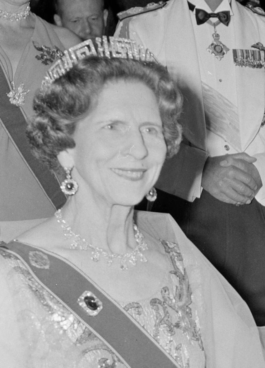 The sister of King Paul of Greece, Queen Helen was a frequent guest in Athens, and also wore the Sapphire Brooch for the Wedding of her niece, Princess Sophia, to the future King Juan Carlos of Spain in 1962, King Paul’s 60th Birthday Banquet, the Greek Monarchy Centenary, and the Wedding of King Constantine of Greece and Princess Anne-Marie of Denmark in 1964, which was the last public appearance of the Russian Sapphire Brooch.