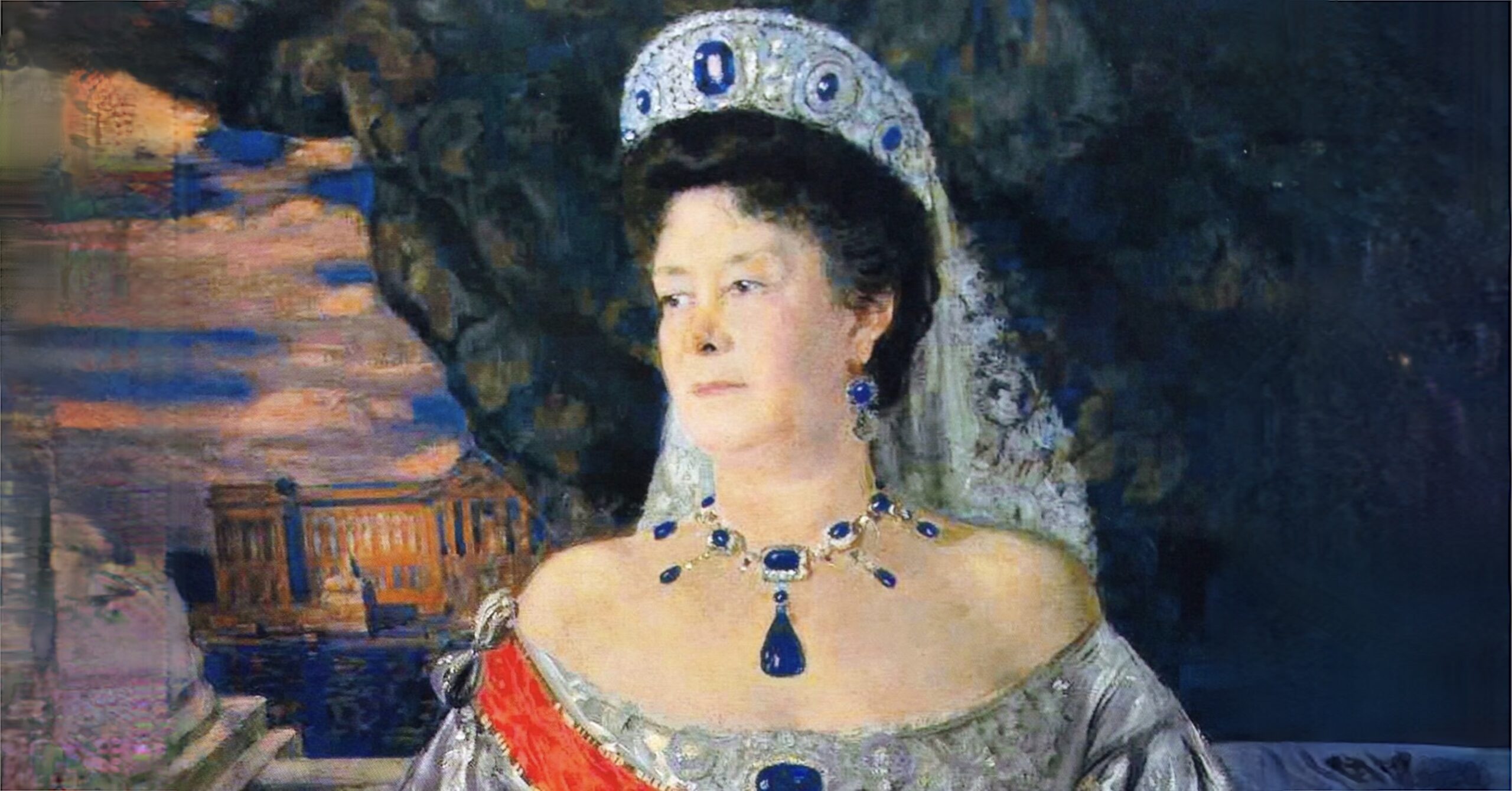 Two years later, Grand Duchess Vladimir was portrayed wearing the Sapphire and Diamond Necklace alongside the Cartier Sapphire Kokoshnik and Stomacher in an iconic portrait by Boris Kustodiev.