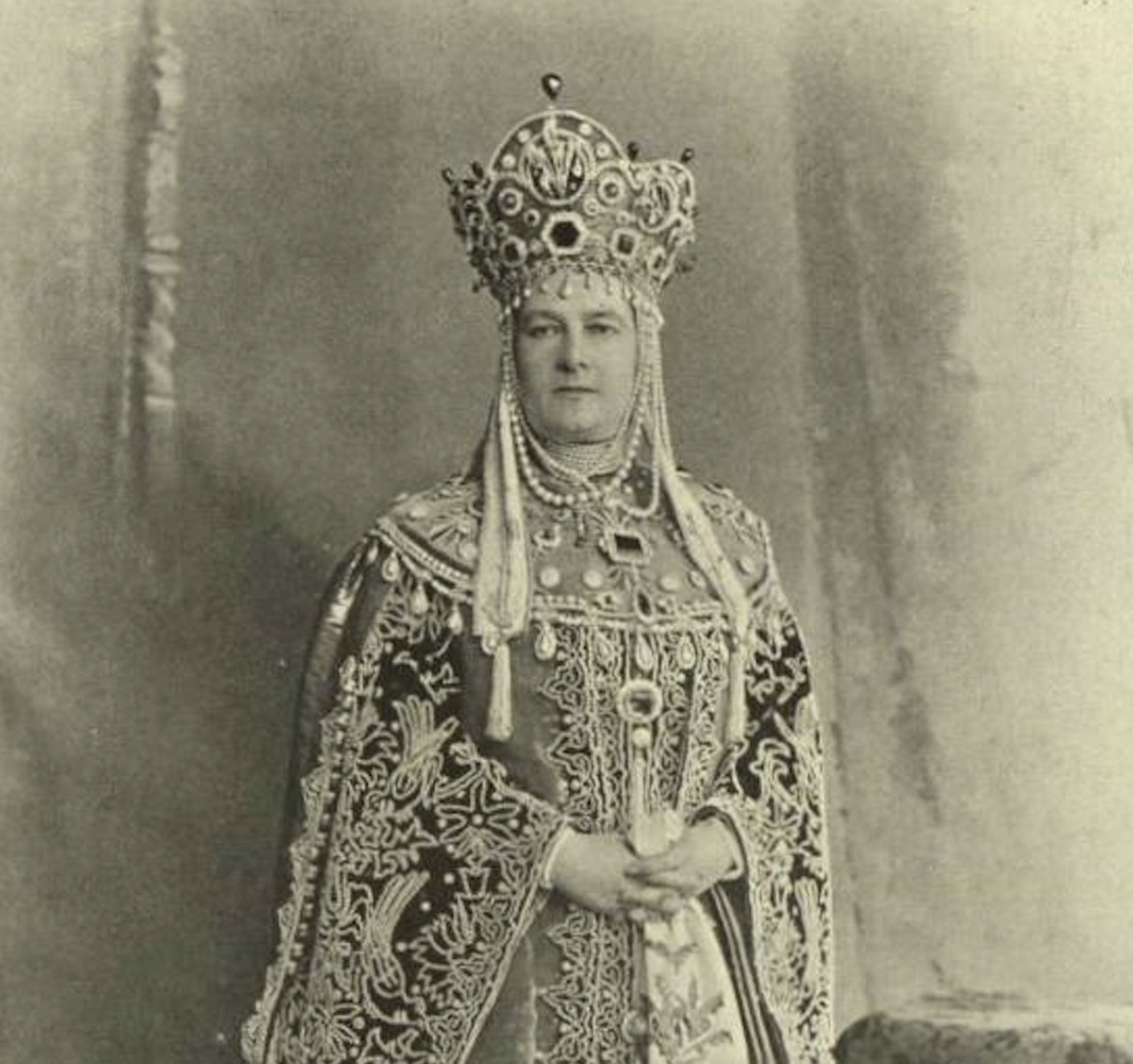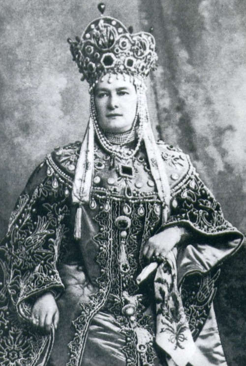 Grand Duchess Vladimir had her the massive Sapphire and Diamond Brooch and the central element of the Sapphire and Diamond Necklace set on her costume of a Boyar in the Novgorod style for a legendary Ball at the Winter Palace, which was the last Imperial Court Ball, described by Grand Duke Alexander Mikhailovitch: