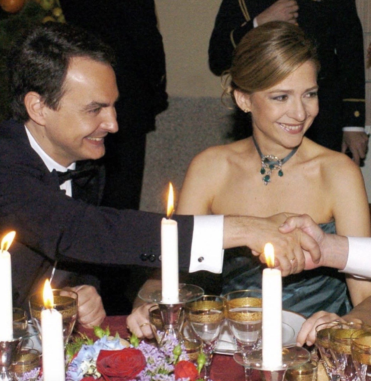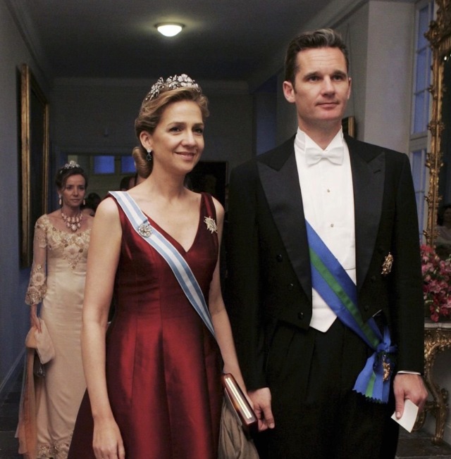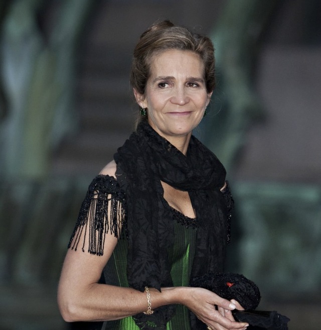 Infanta Elena has also worn the emerald drops as earrings, including for the Pre-Wedding Gala of Crown Princess Victoria of Sweden and Daniel Westling.