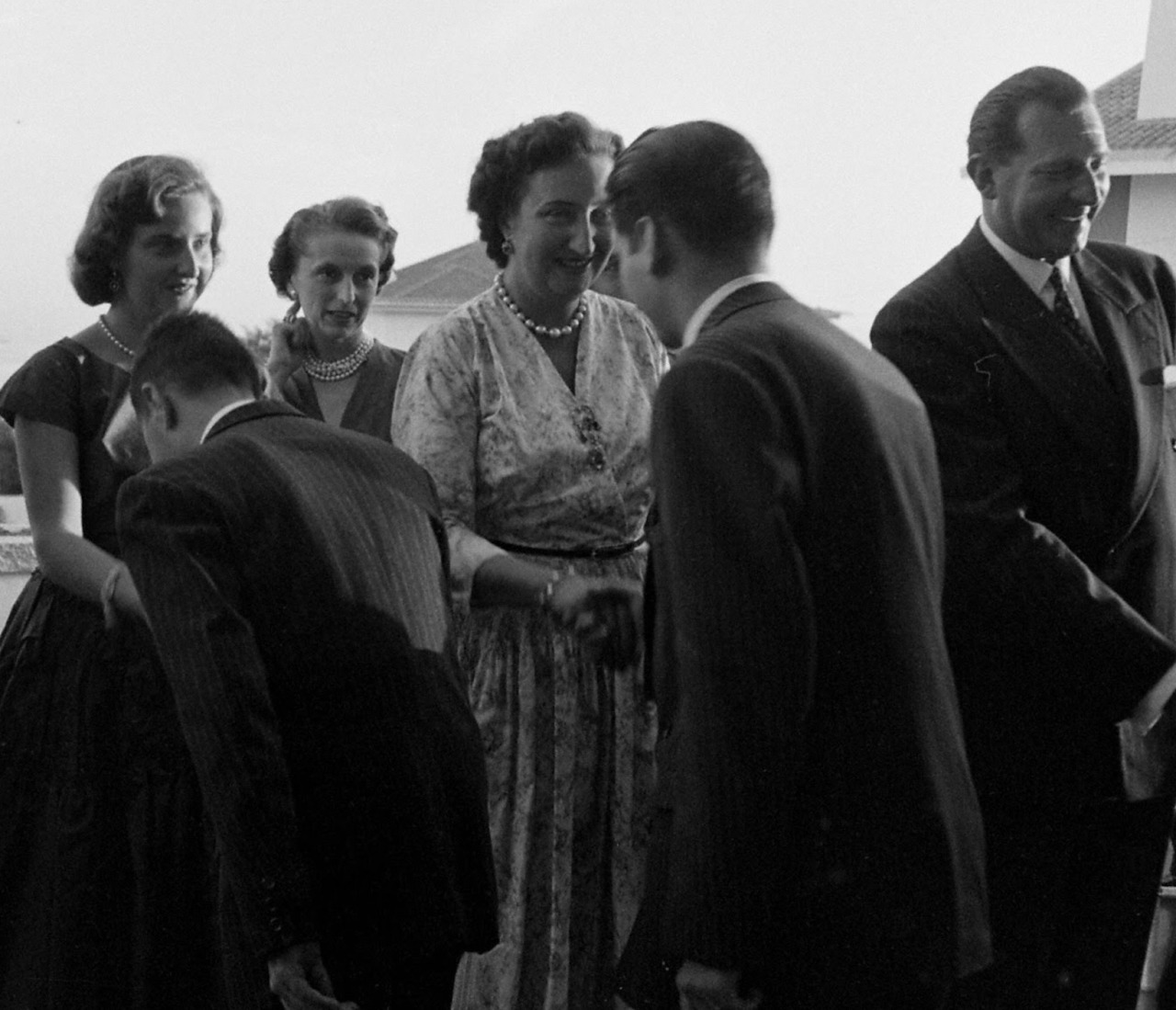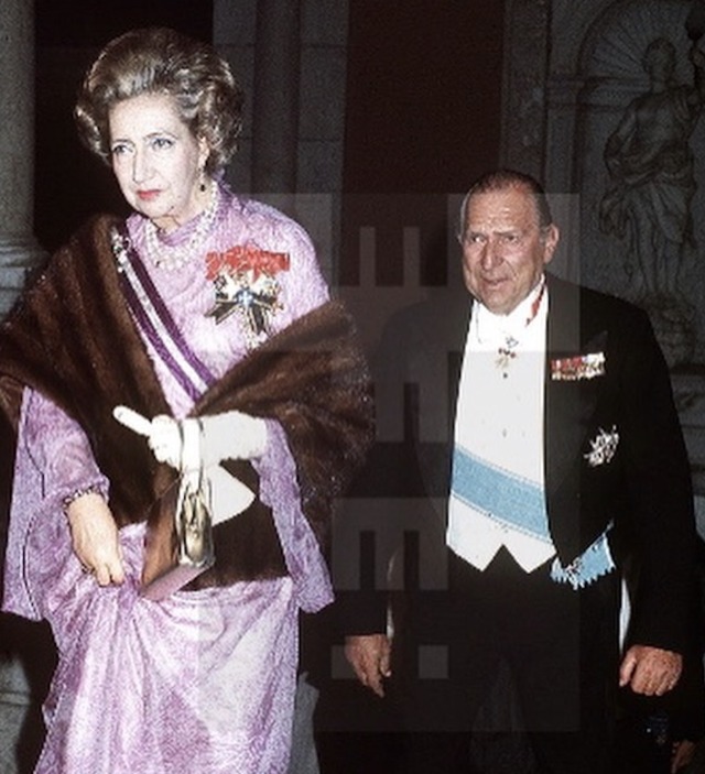 The Countess of Barcelona wore this brooch, incorporating her aunt’s emeralds and diamonds, on several notable occasions, including a reception held prior to Infanta Pilar’s debutante ball in 1954 and a State Banquet at the Ajuda Palace in Lisbon during King Juan Carlos and Queen Sofía’s first state visit to Portugal in 1978.