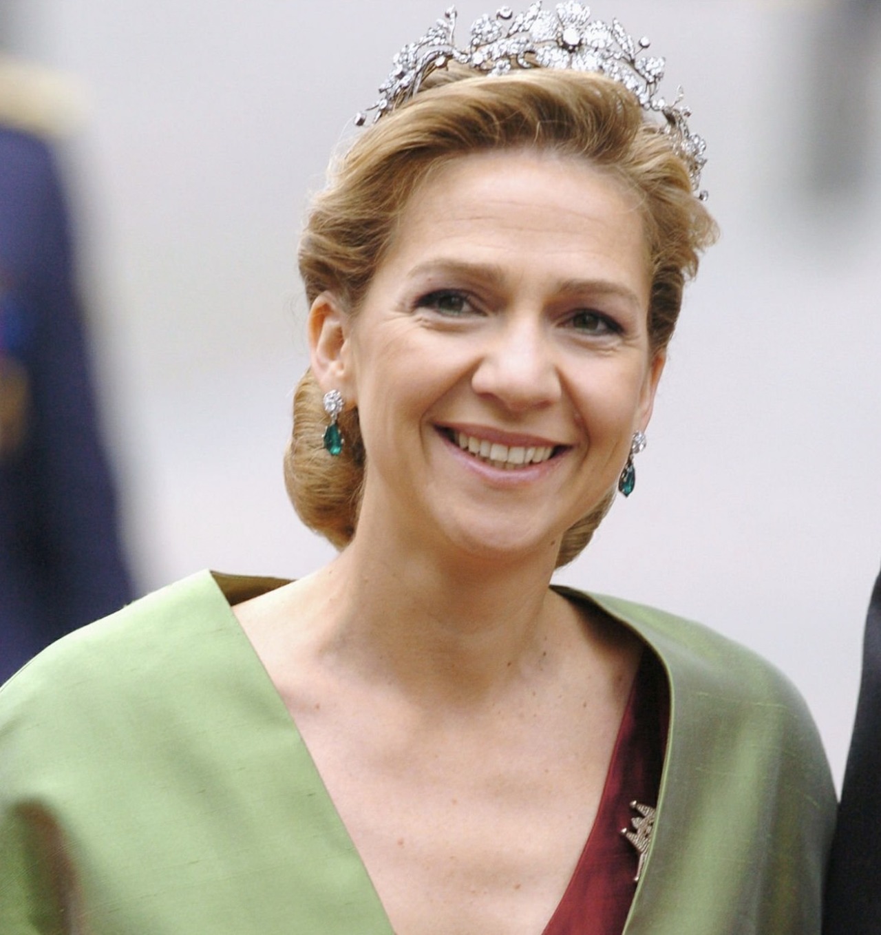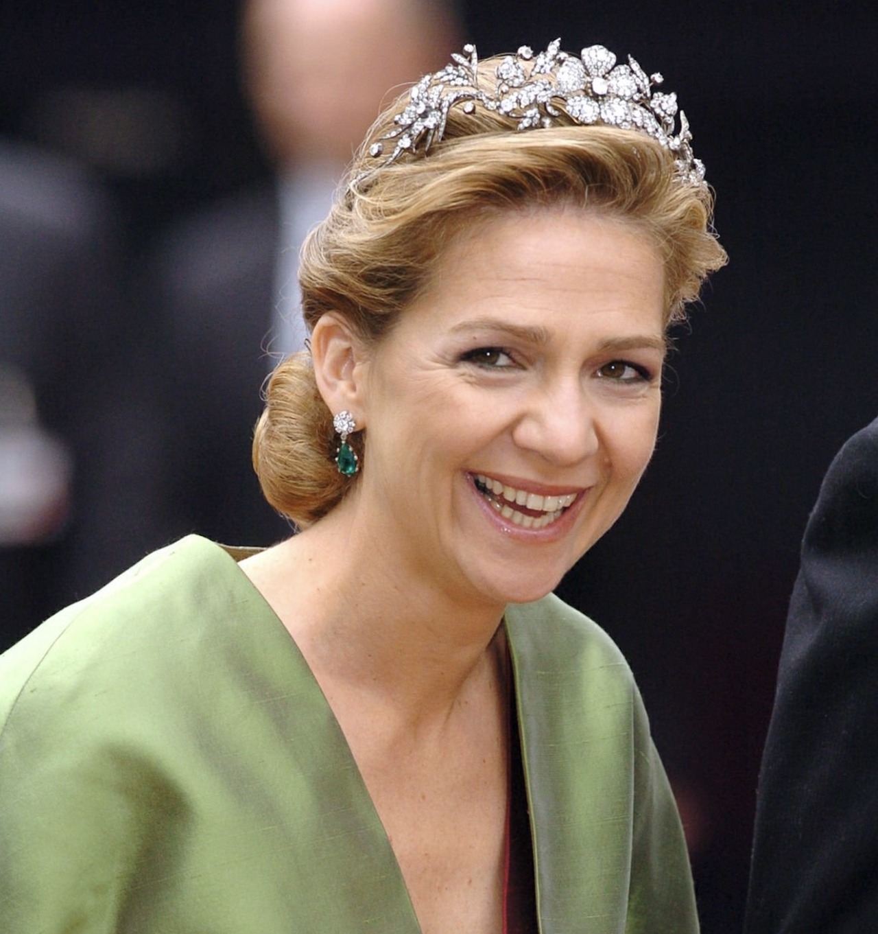 Since then, the brooch has been worn by the Spanish Infanta on numerous occasions, most notably at the Wedding of the Prince of Orange to Maxima Zorrieguieta in 2002, and for the Wedding Gala of the Prince of Asturias and Letizia Ortiz in 2004.