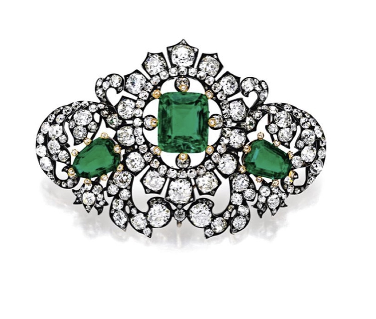 However, those diamonds and emeralds were sourced from a significantly larger and older jewel: a corsage brooch that once belonged to Queen Amelie of Portugal, née Princess of Orléans. This discovery reveals the true origin of the gemstones and establishes their connection to a historically important royal heirloom.
