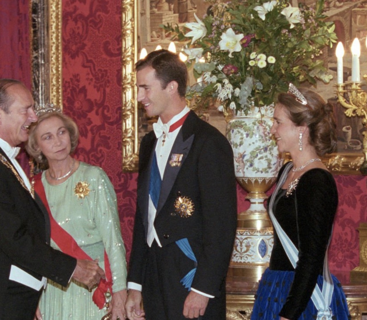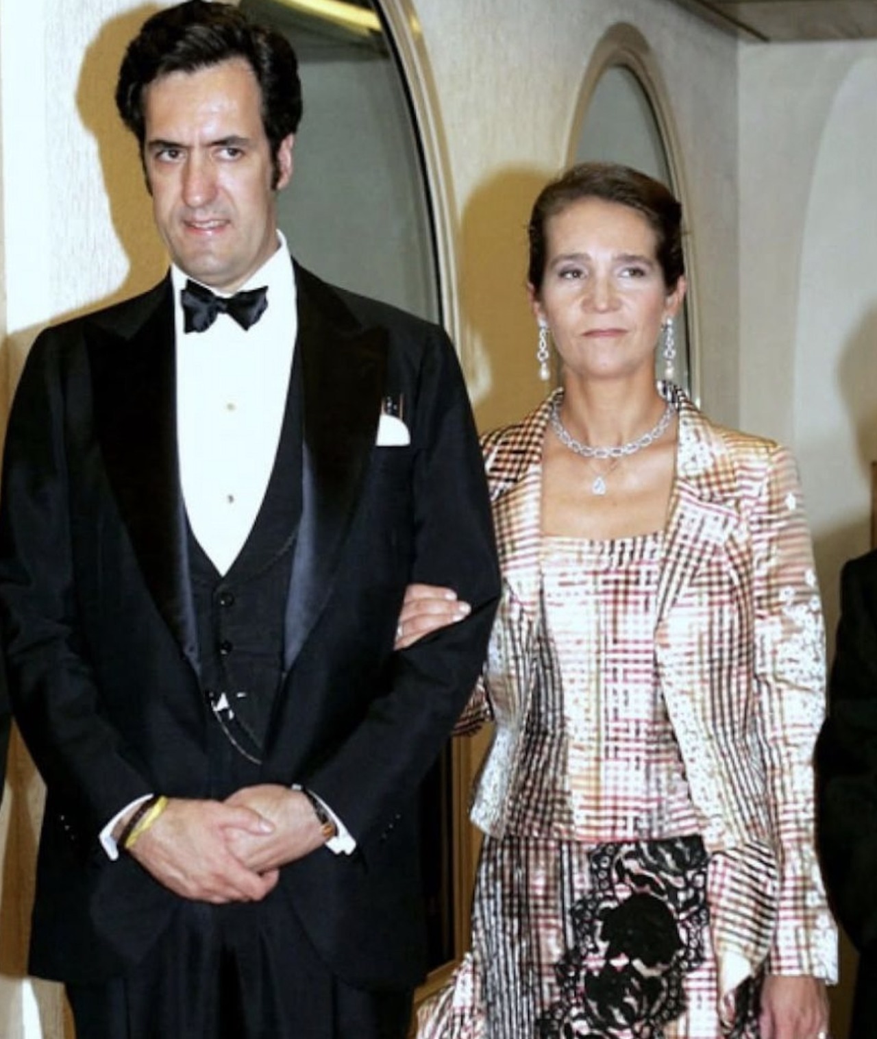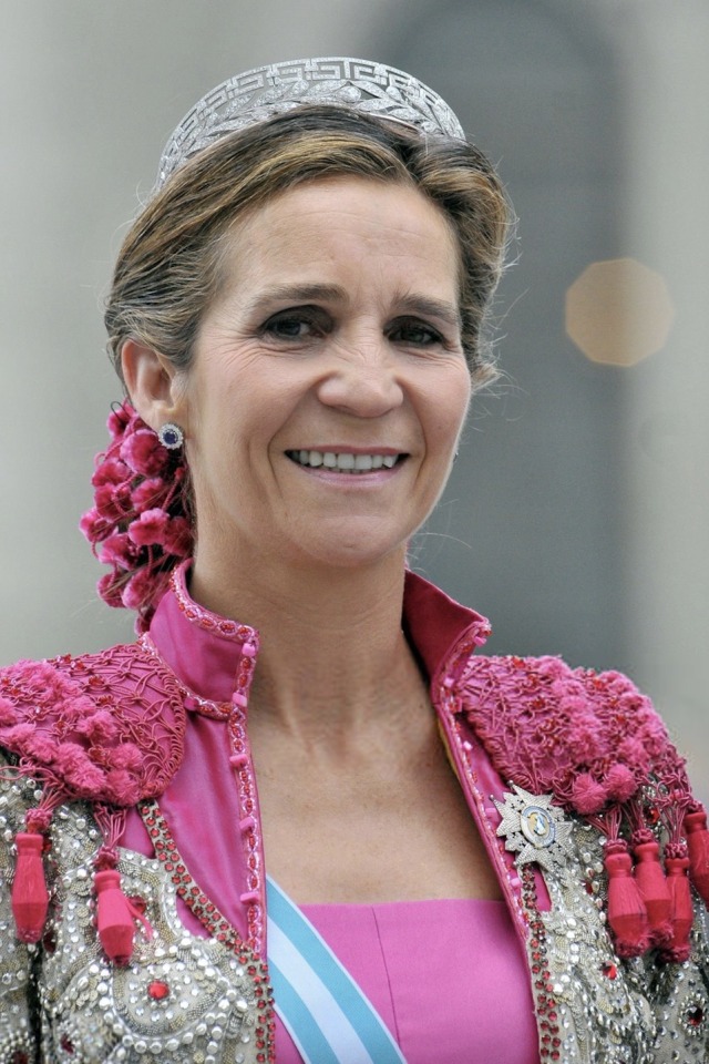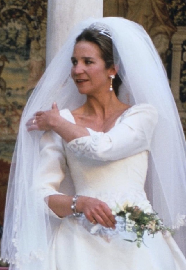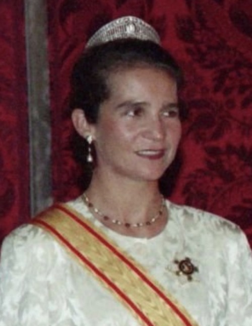 Doña Elena also wore the diamond chain both as necklace and bracelets on some family occasions, such as the Wedding of Princess Alexia of Greece in 1999, and the Wedding of Princess Victoria of Borbon-Two Sicilies in 2005.